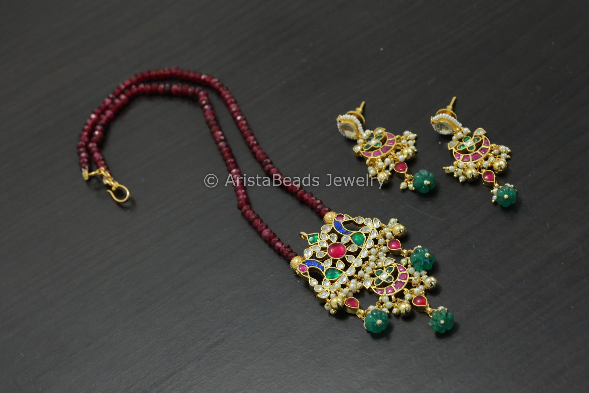 Dainty Pachi Kundan & Ruby Jade Mala Necklace Set