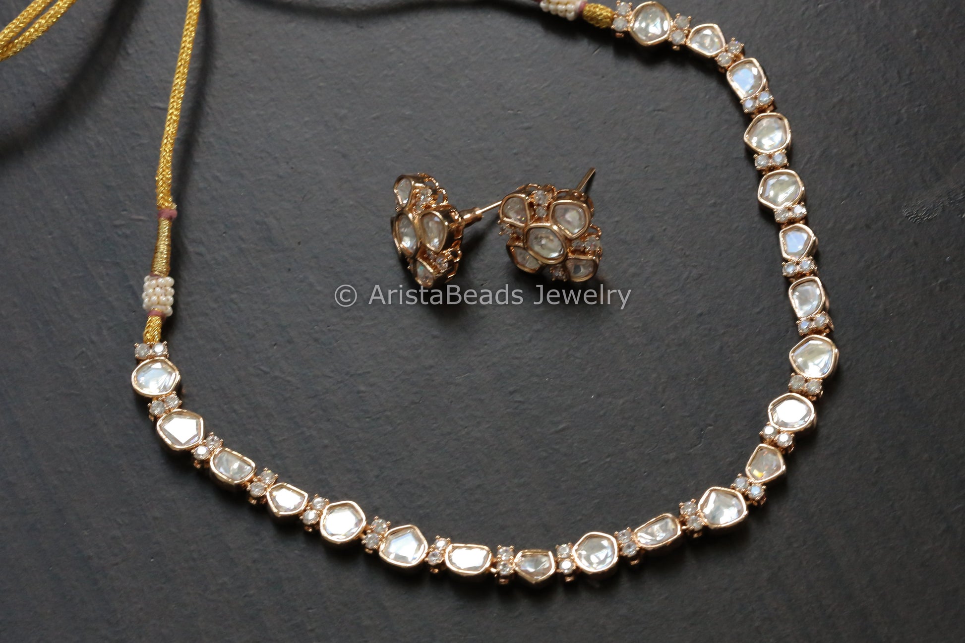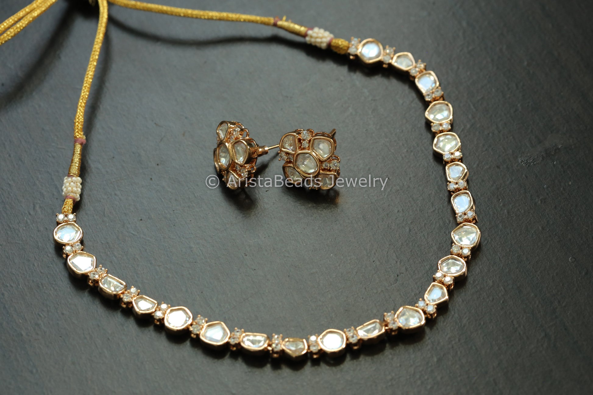 Dainty Polki & Micro CZ Necklace Set - Rose Gold