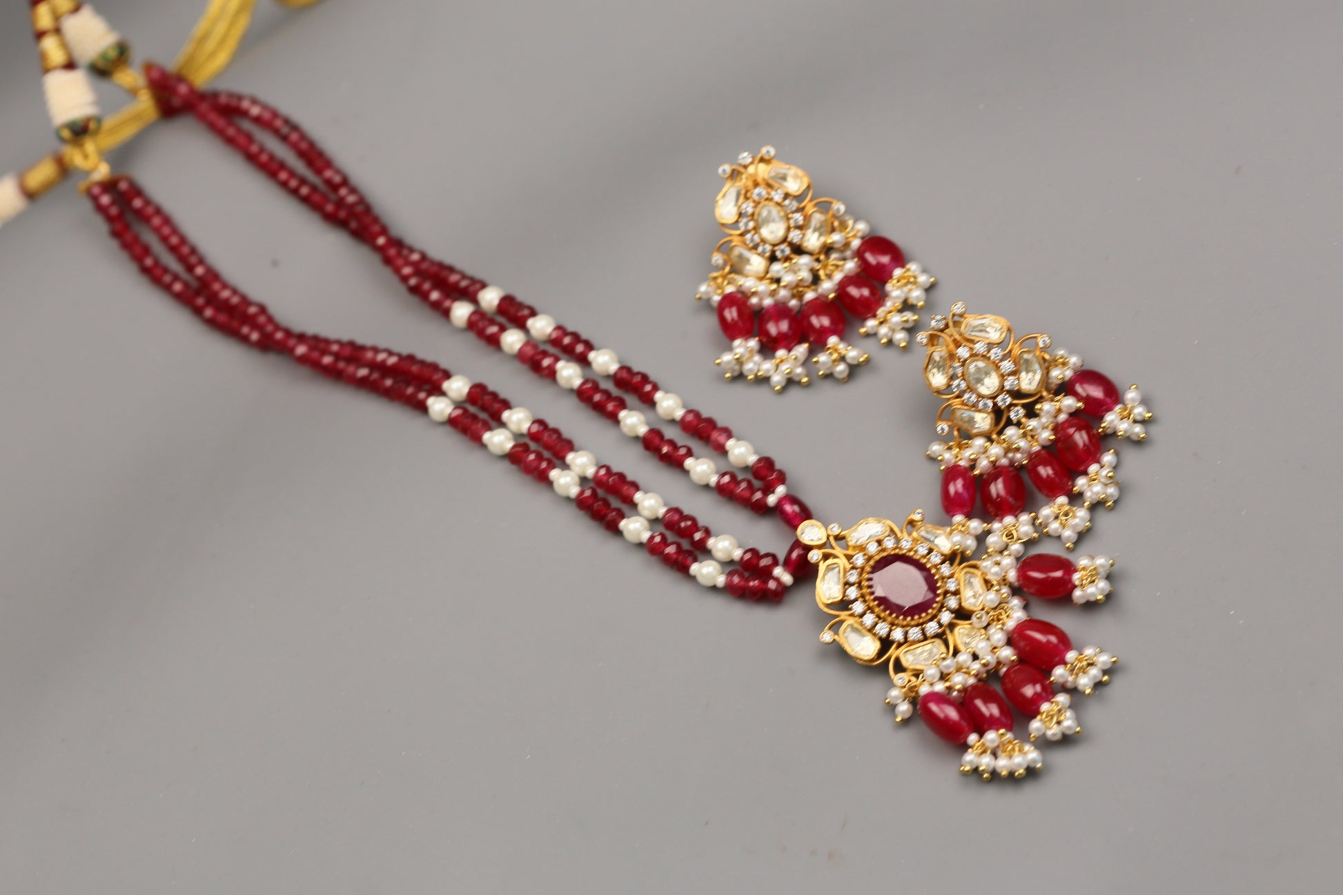 Dhara Dainty Real Moissanite Pendant Set - Red