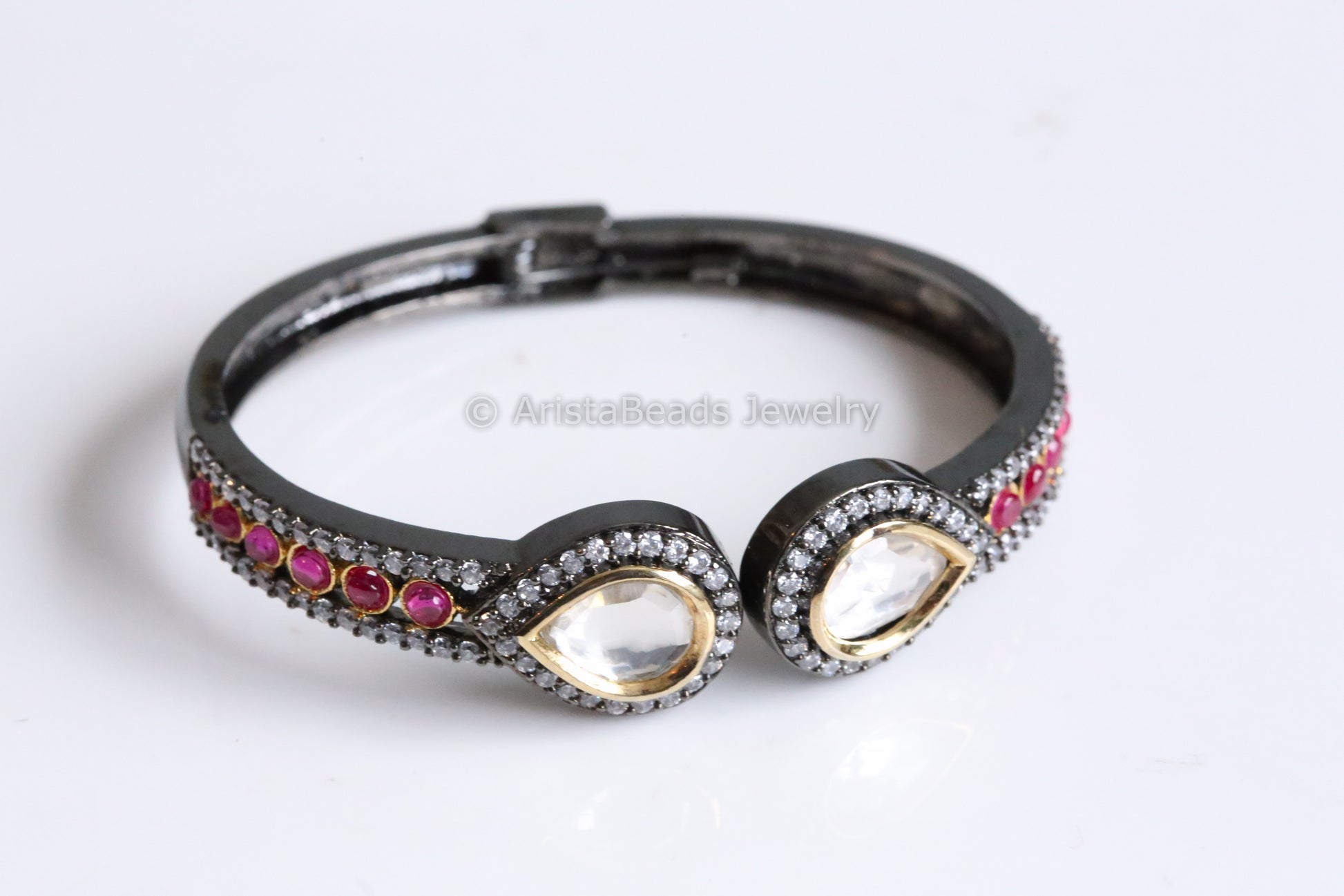 Dainty Victorian Kundan & CZ Bracelet - Ruby