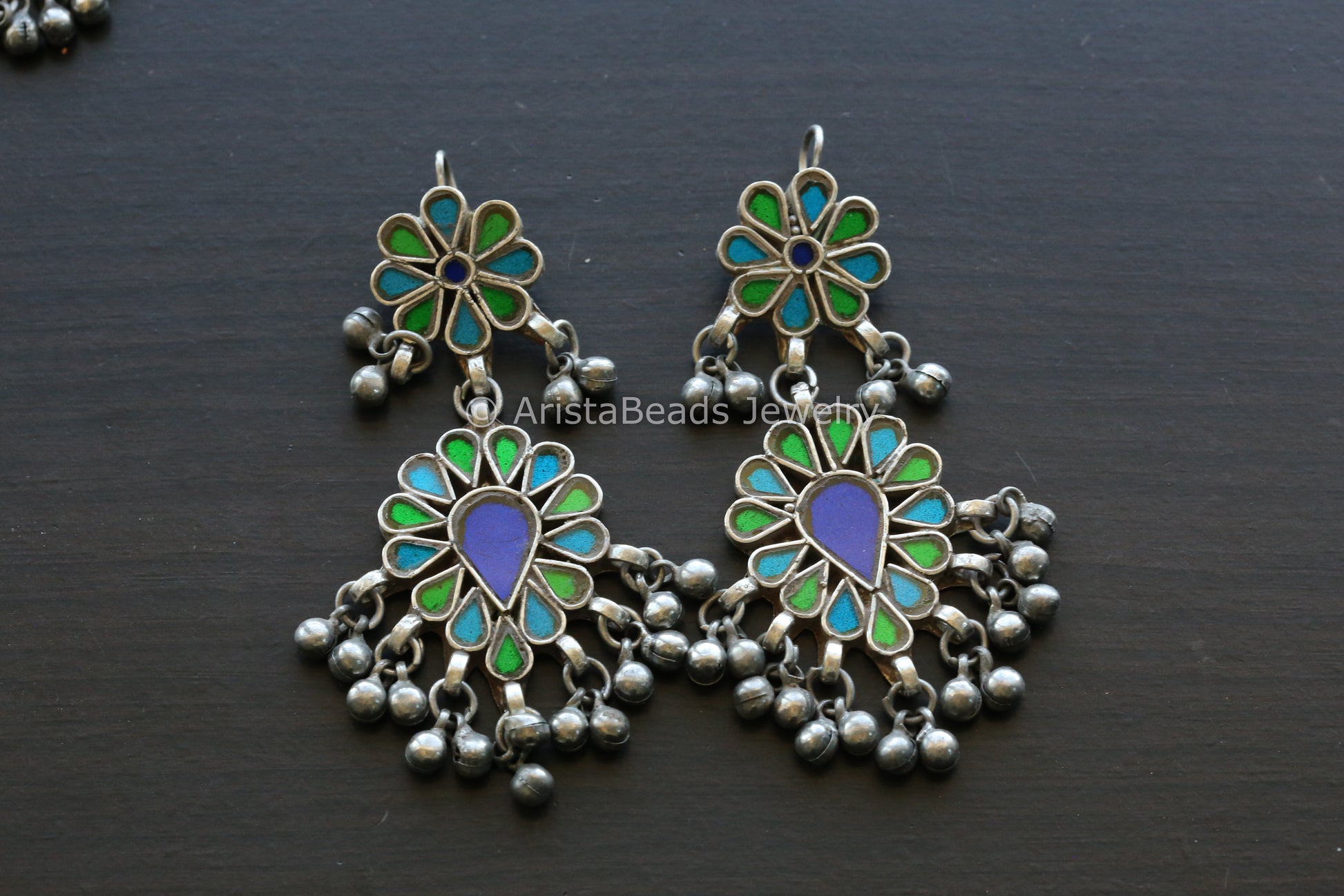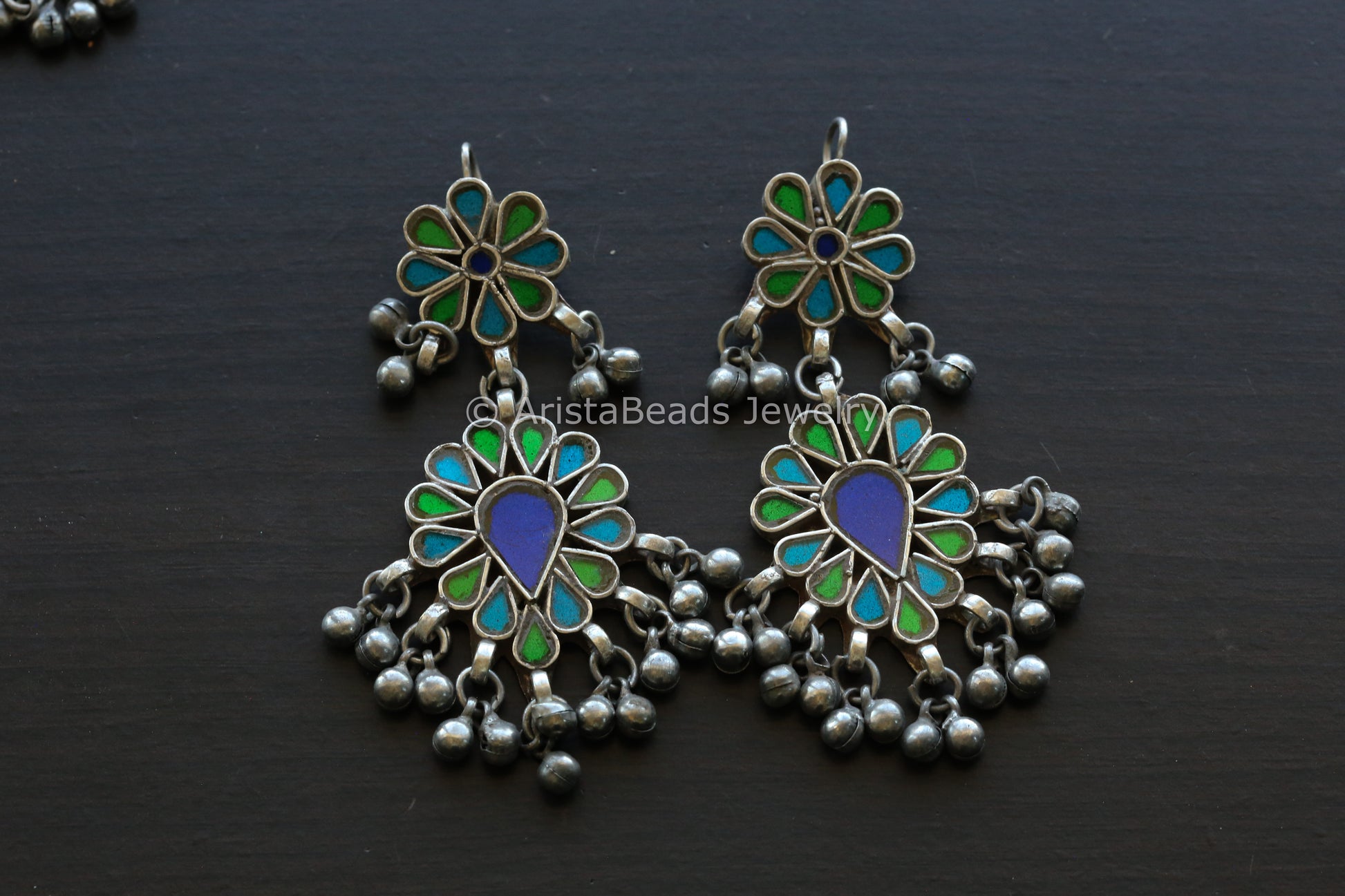 Darpan Real Glass Earrings - Blue Green