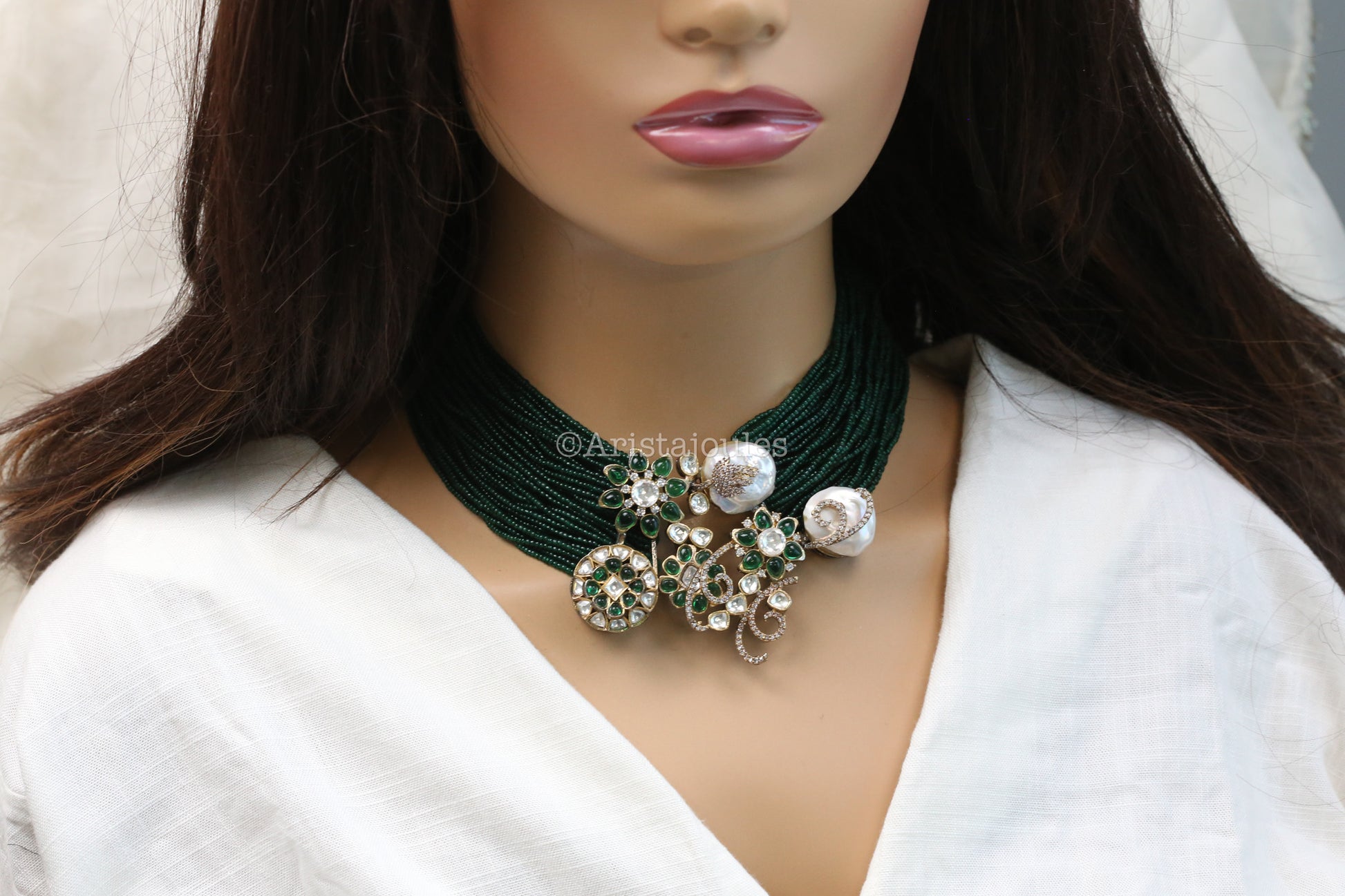 Elevate your style with this playful multistrand set featuring baroque pearls, sparkling CZ stones, and vibrant green Pota stones, perfect for adding a fun twist to any outfit.
