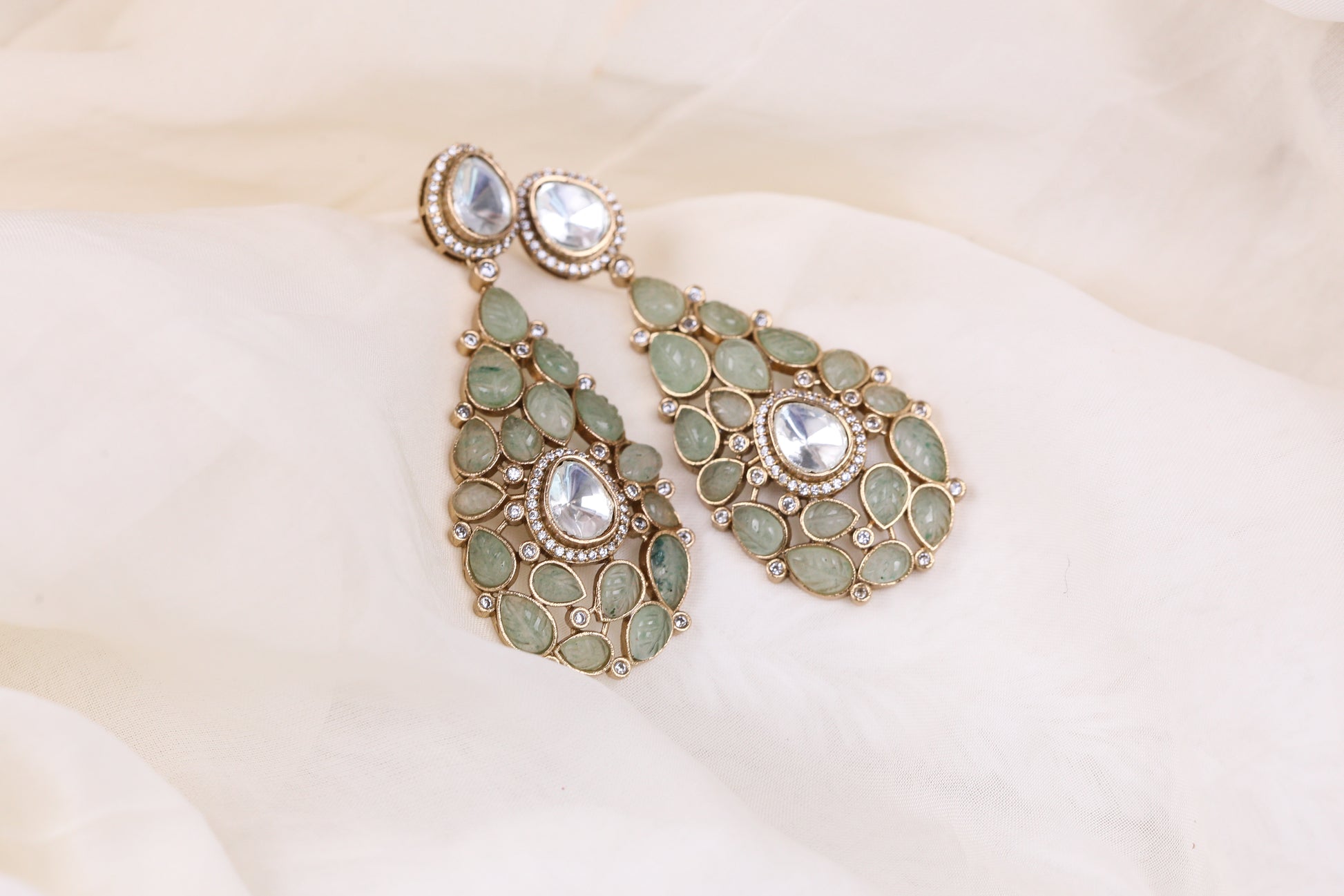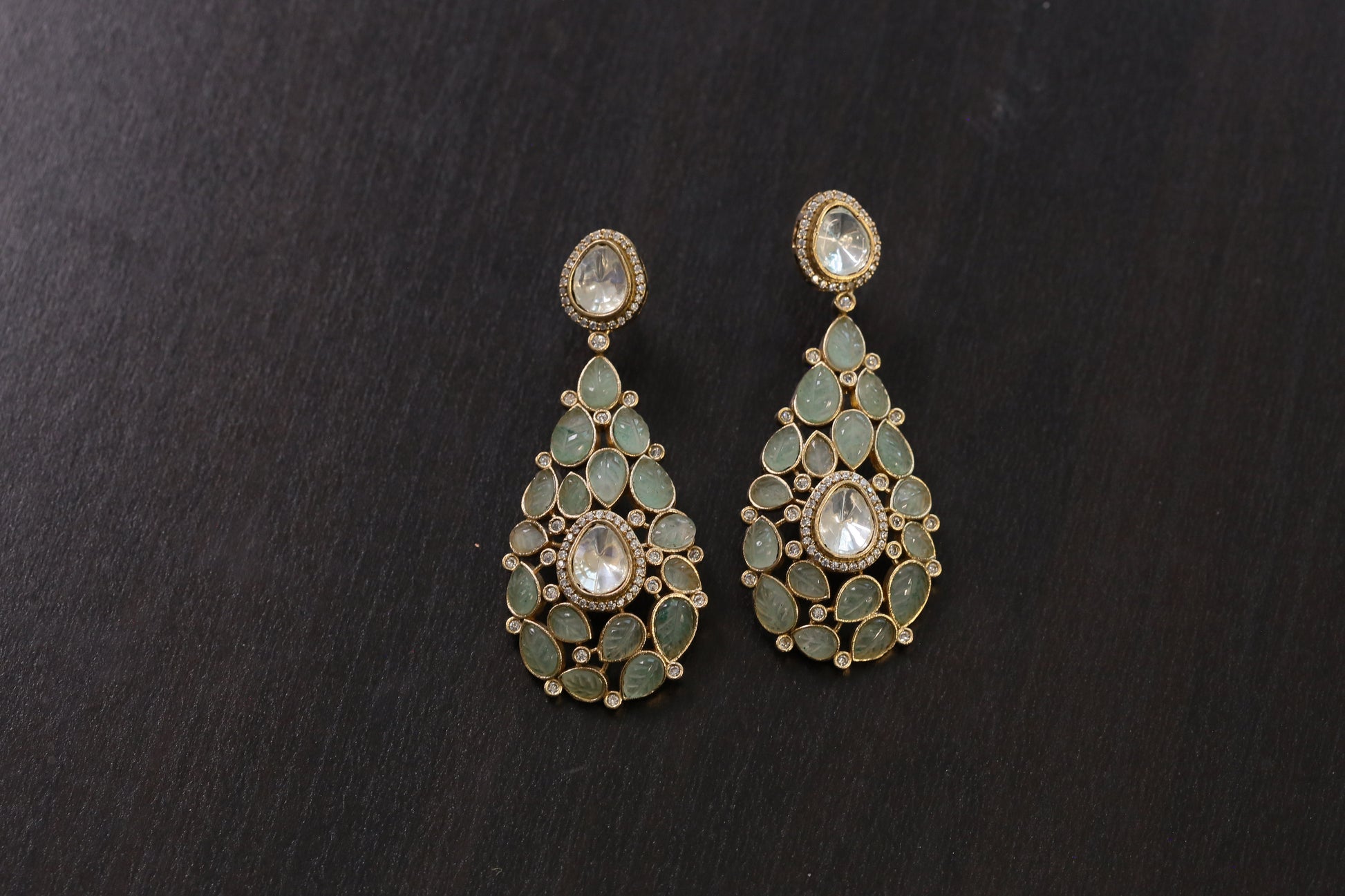 Semiprecious Carved Stone Polki Earrings - Fluorite