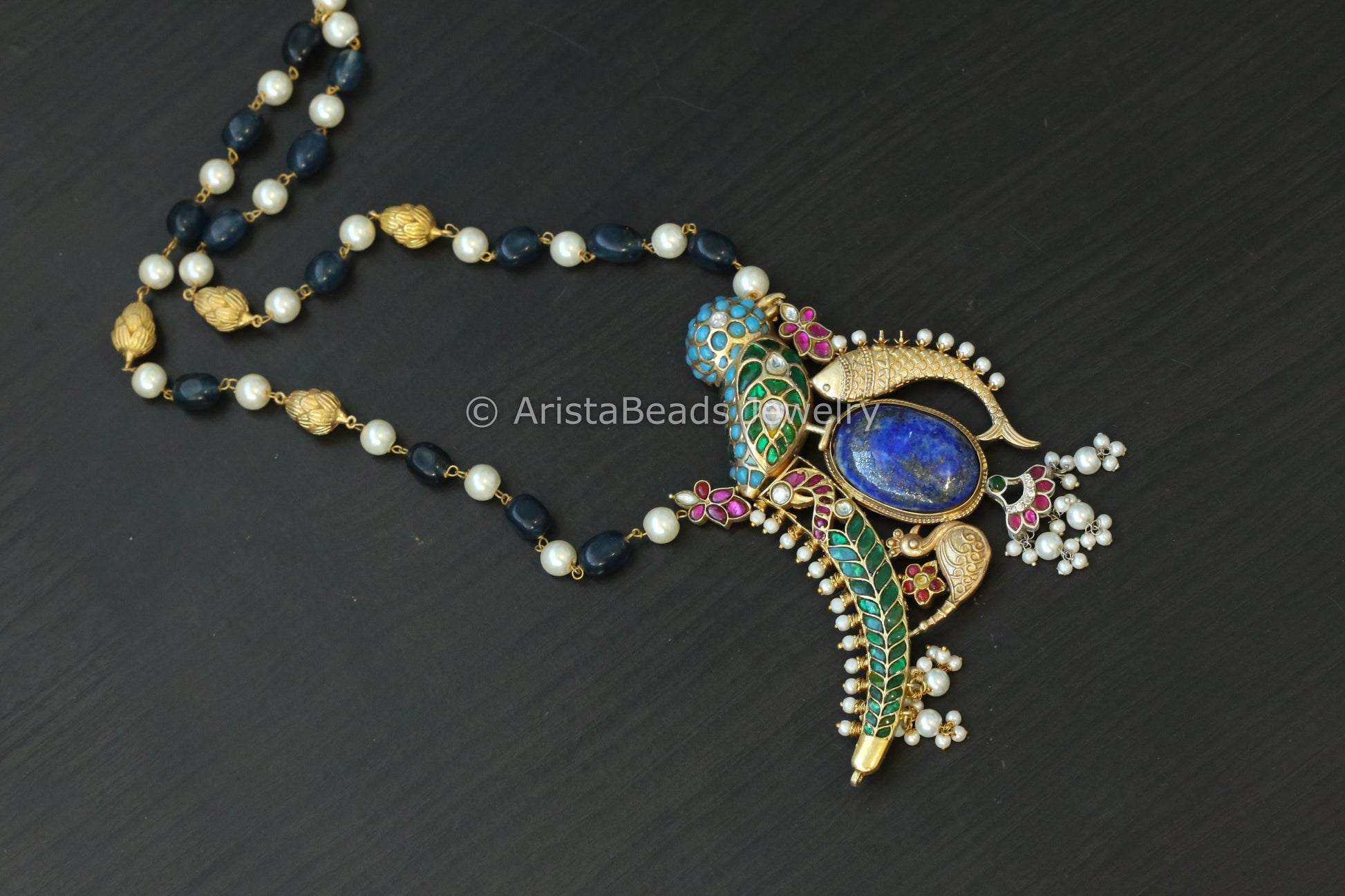 Designer Jadau Kundan Fusion Necklace - Lapis