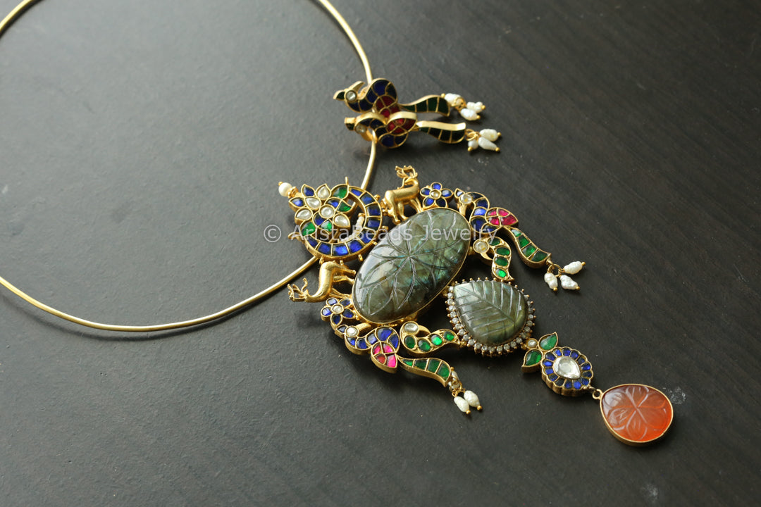 Designer Jadau Pendant Hasli Necklace - Carved Labradorite