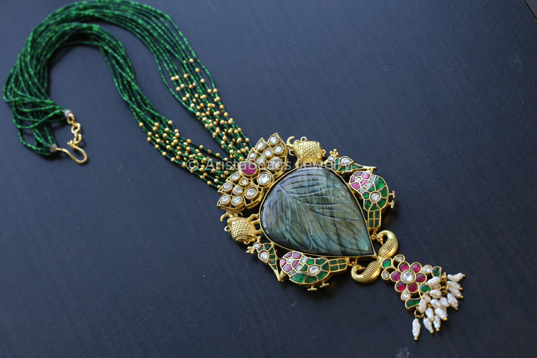 Designer Jadau Pendant Necklace - Carved Labradorite