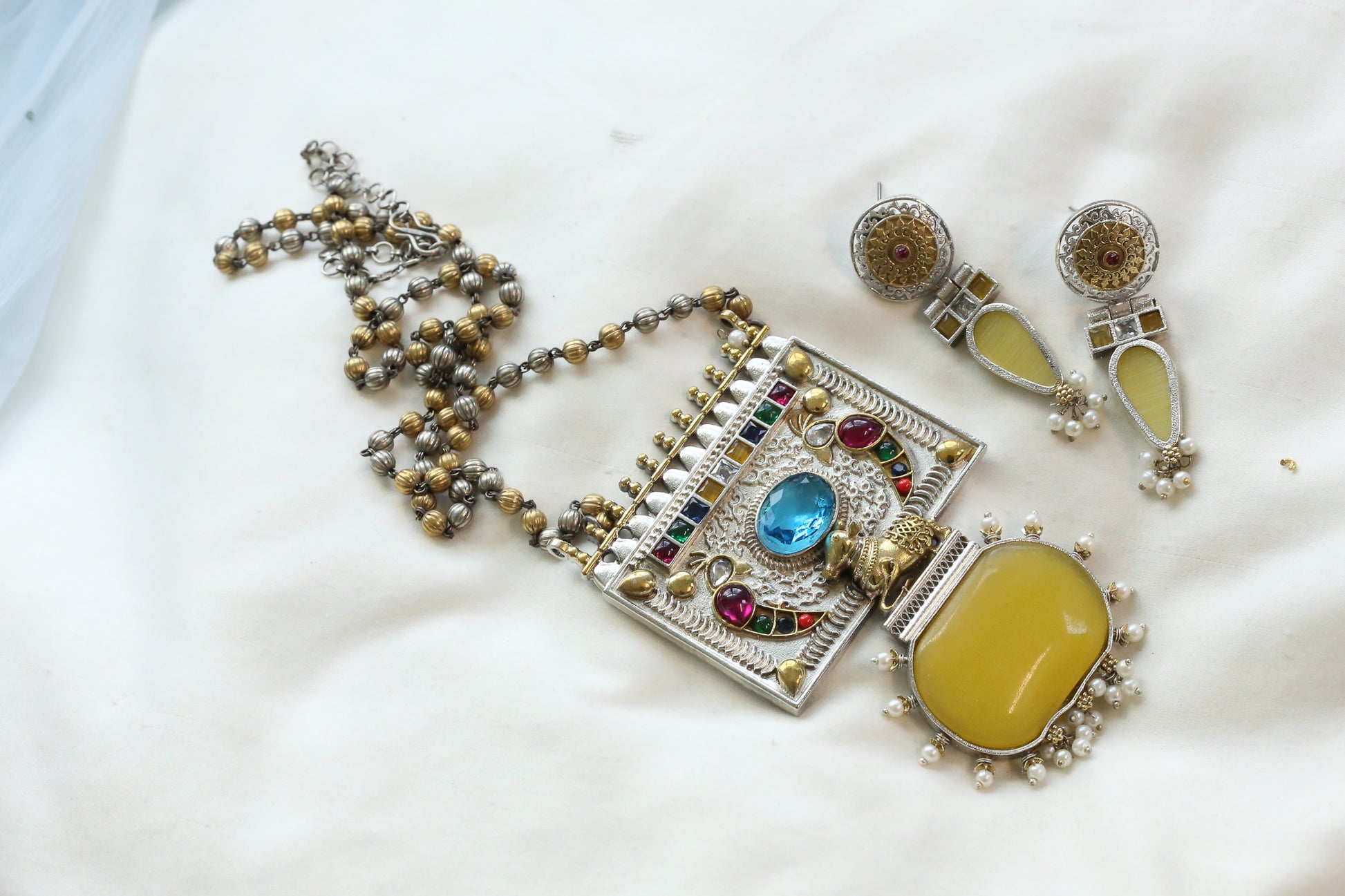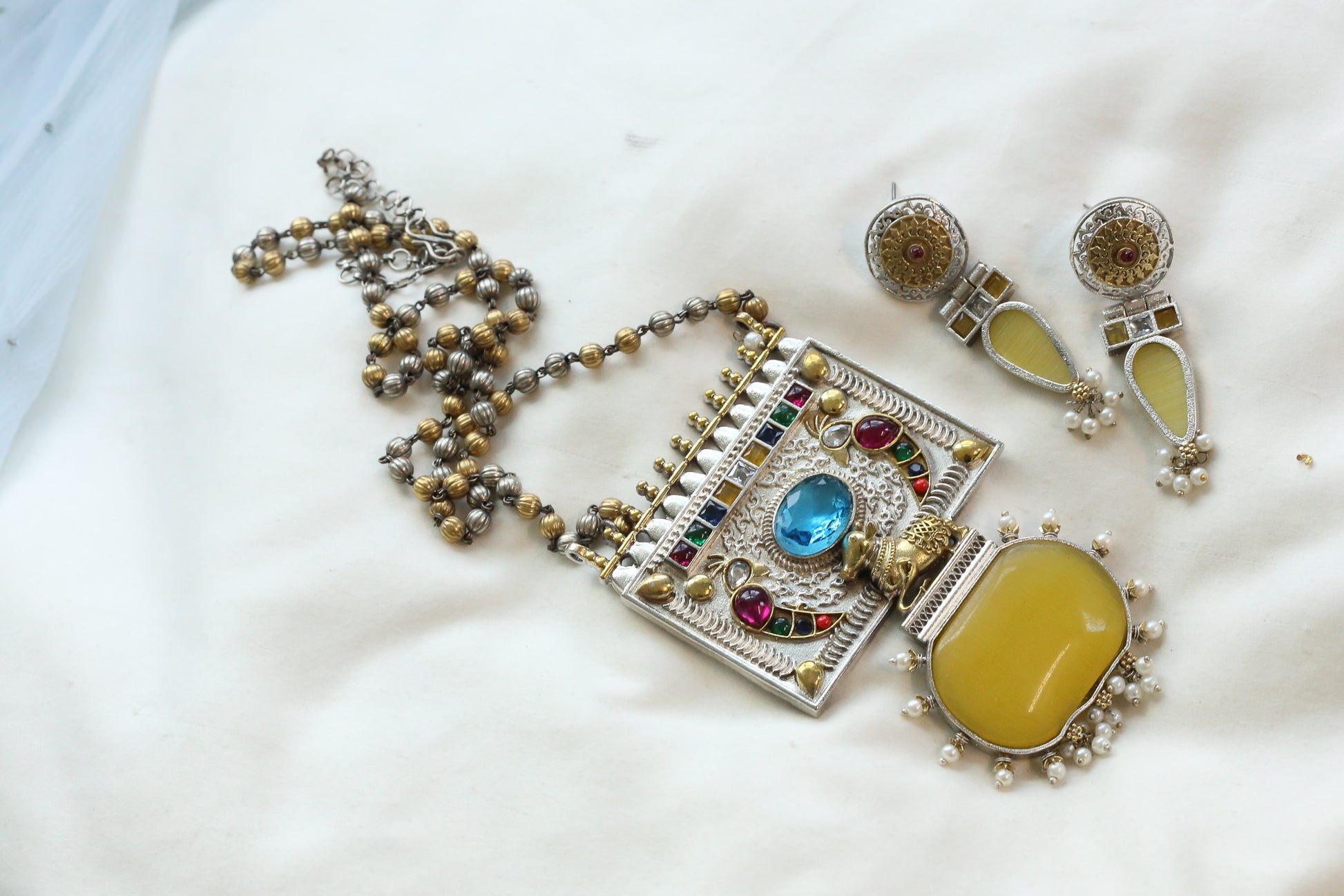 Dhaani Oxidized Kundan Necklace Set (T102-06)