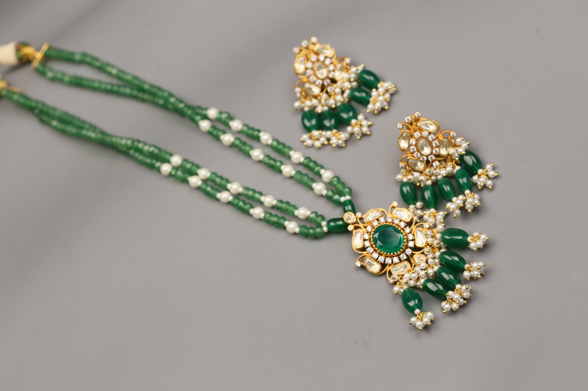 Dhara Dainty Real Moissanite Pendant Set -Green