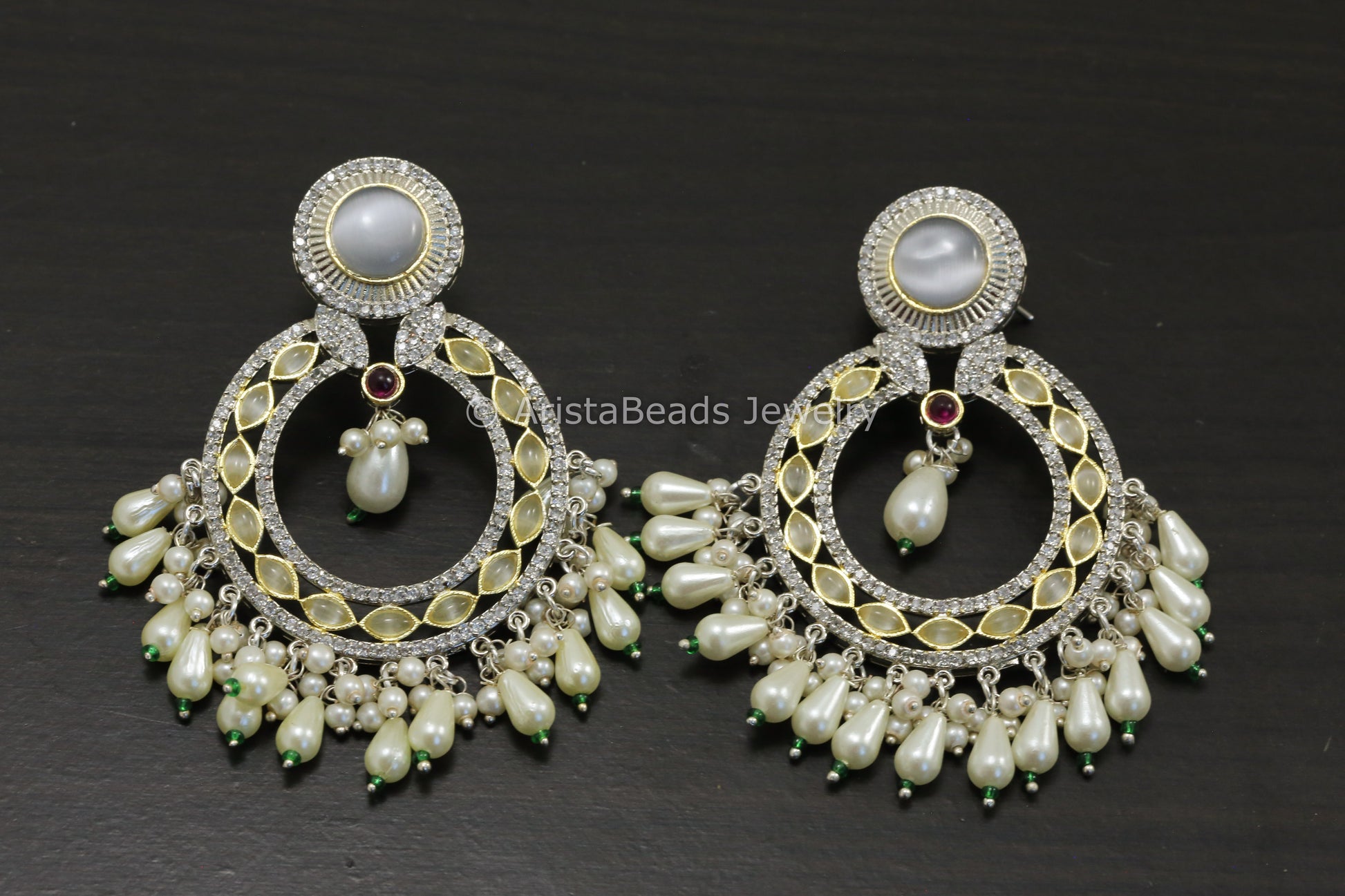 Dual Tone CZ & Pota Stone Chandbaali - Lemon