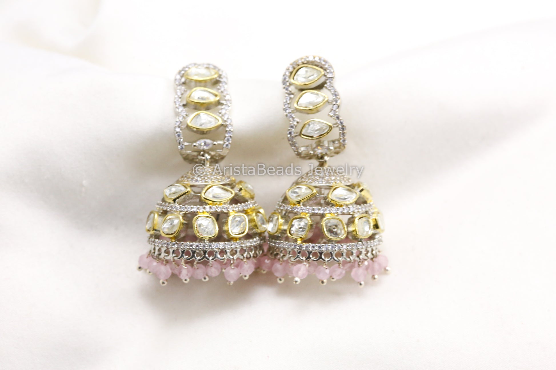 Dual Tone CZ & Uncut Polki Jhumka - Pink