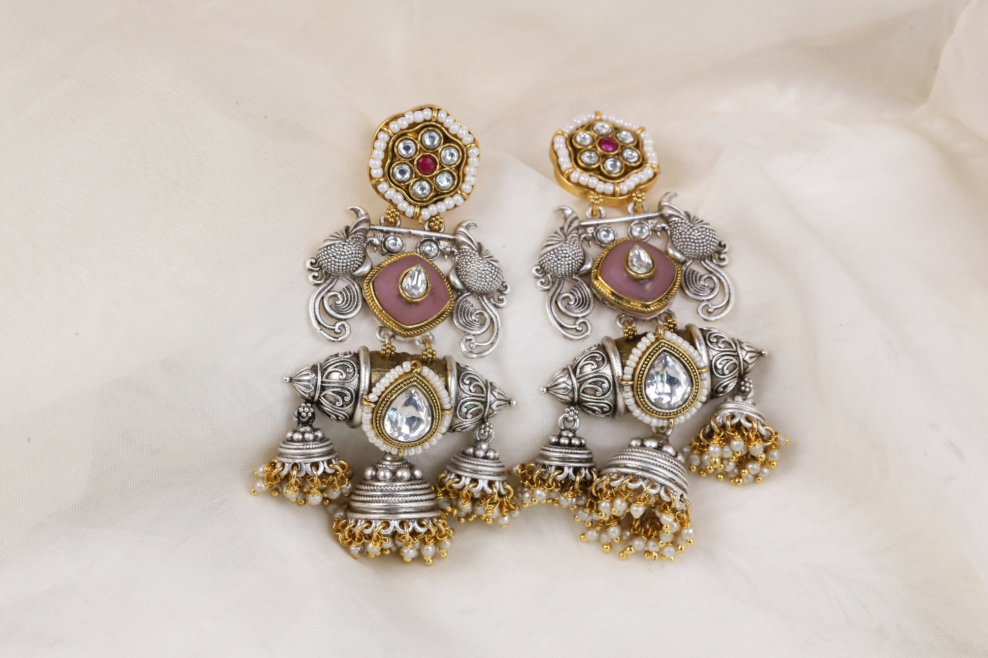 Dual Tone Fusion Jhumka (102-02) - Pink