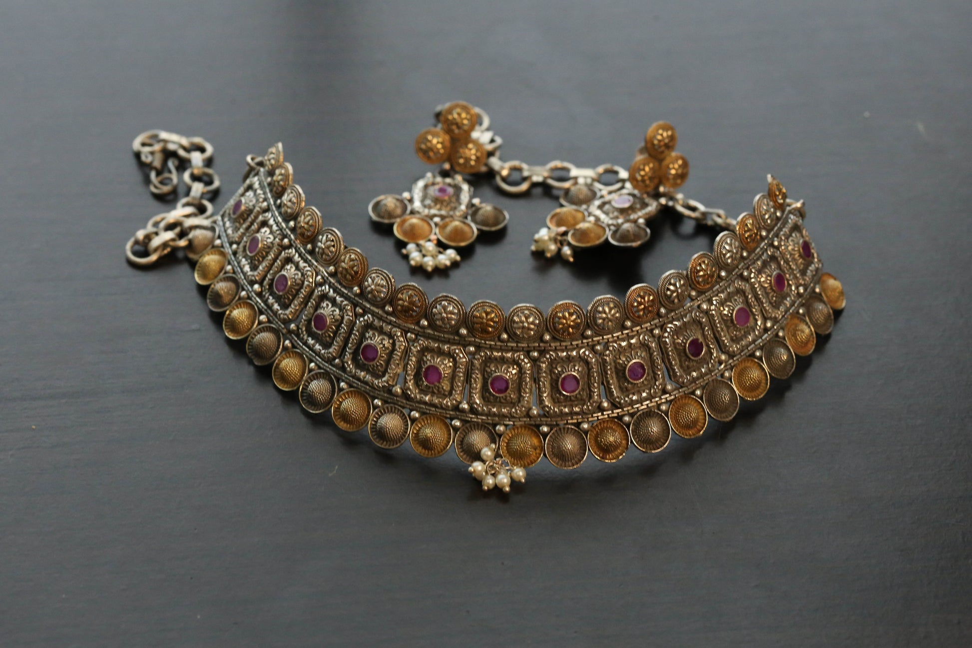 Dual tone Gulband Choker Set- Ruby