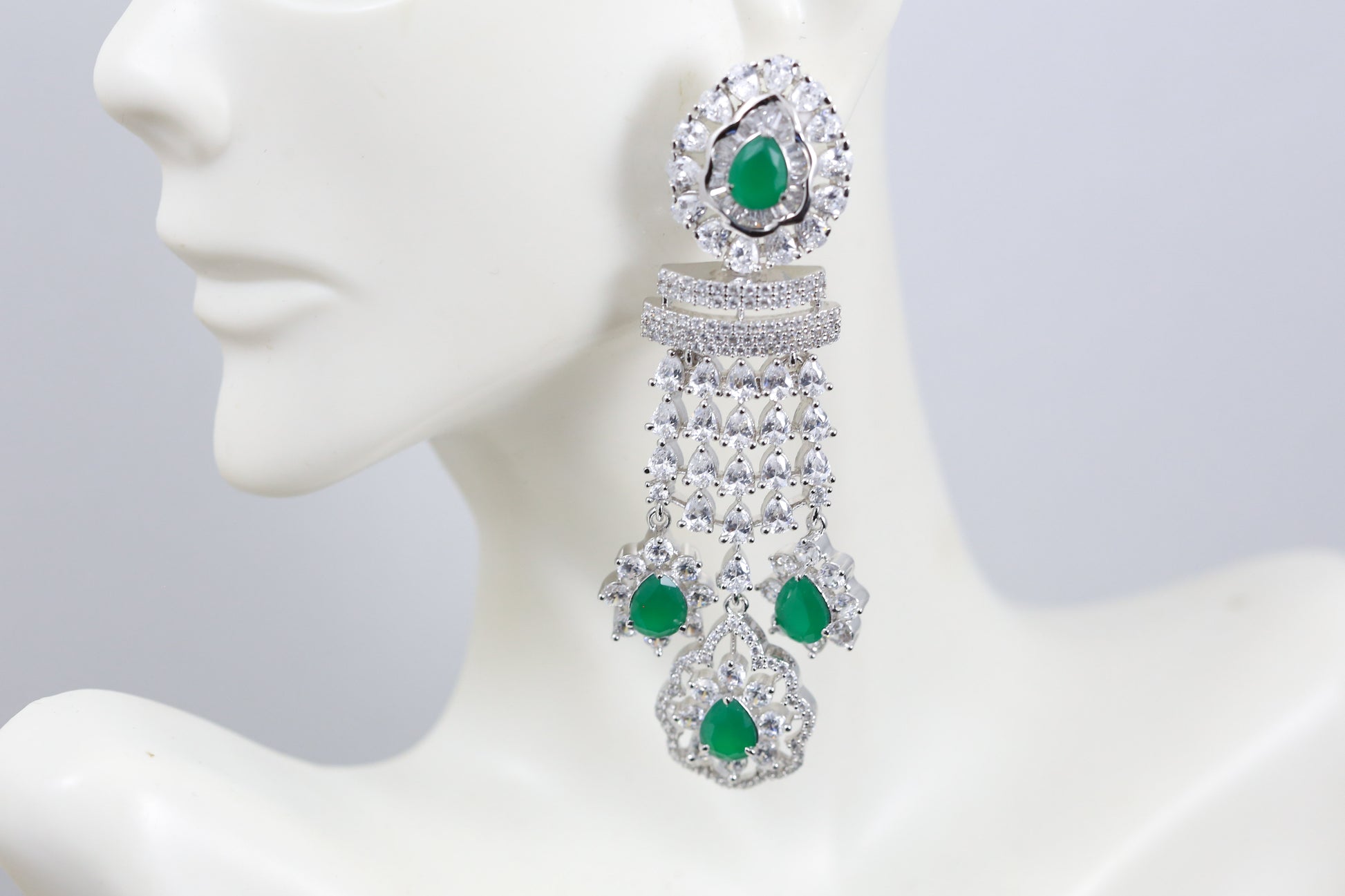 Green CZ Drop Earrings