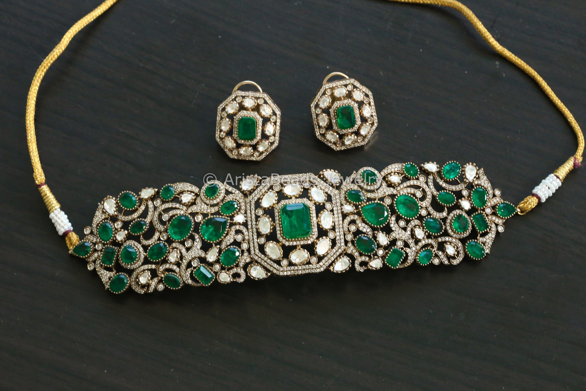 Emerald Doublet & Moissanite Polki Set (102-29)