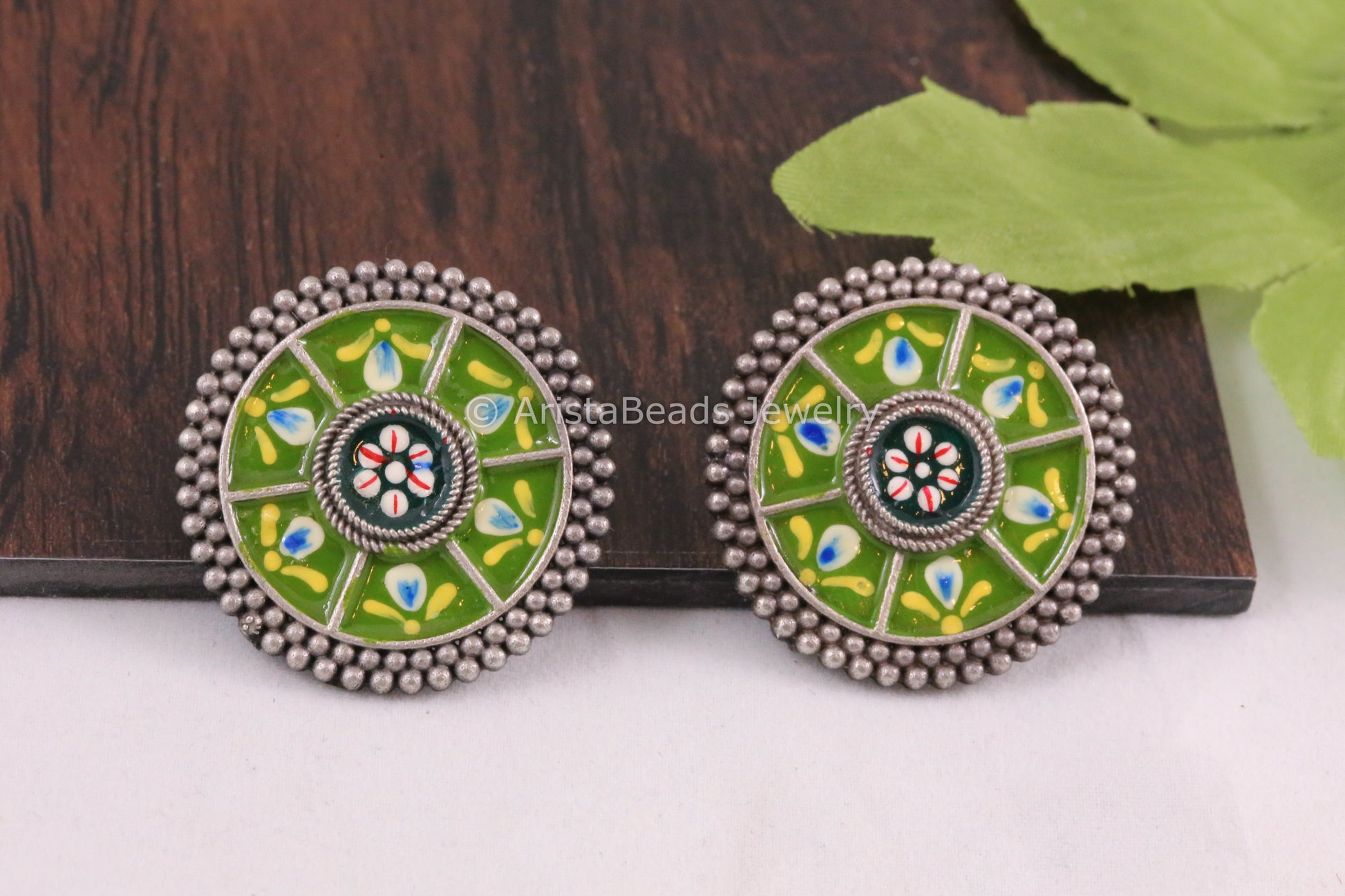 Enamel Earrings - Parrot Green