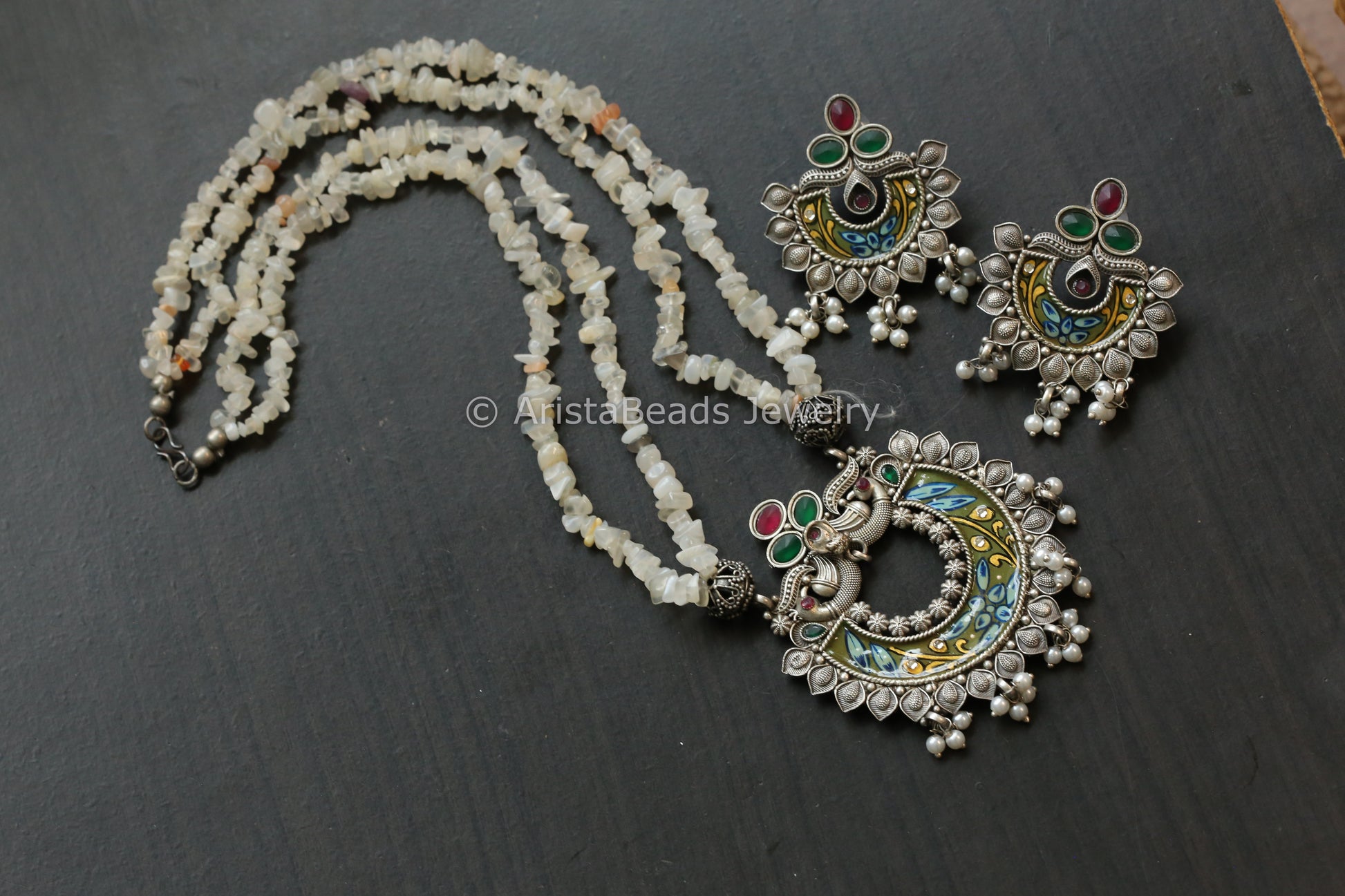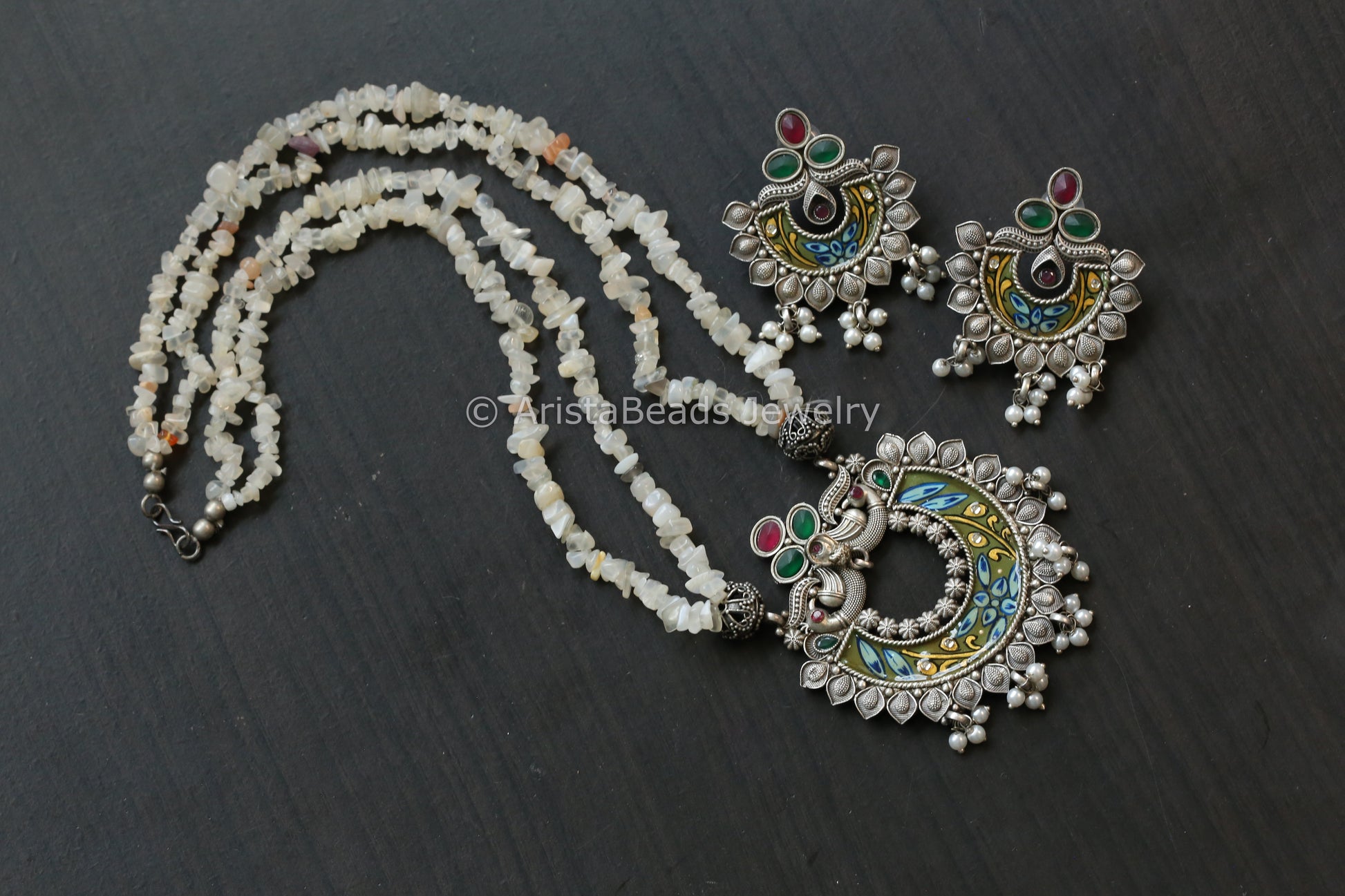 Enamel Oxidized Necklace Set - Moonstone Beads