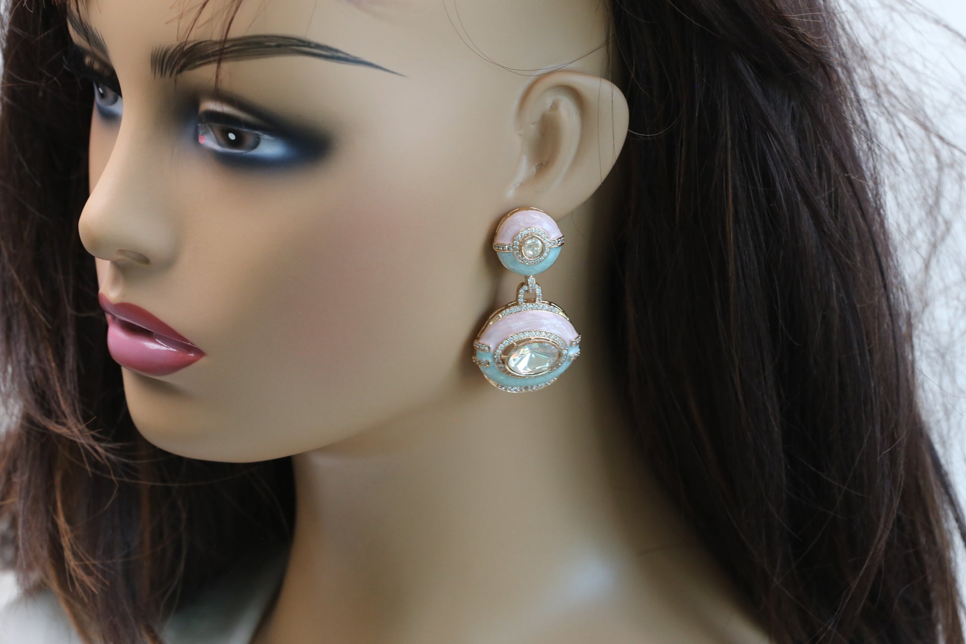 Enamel Real Moissanite Earrings - Aqua Pink