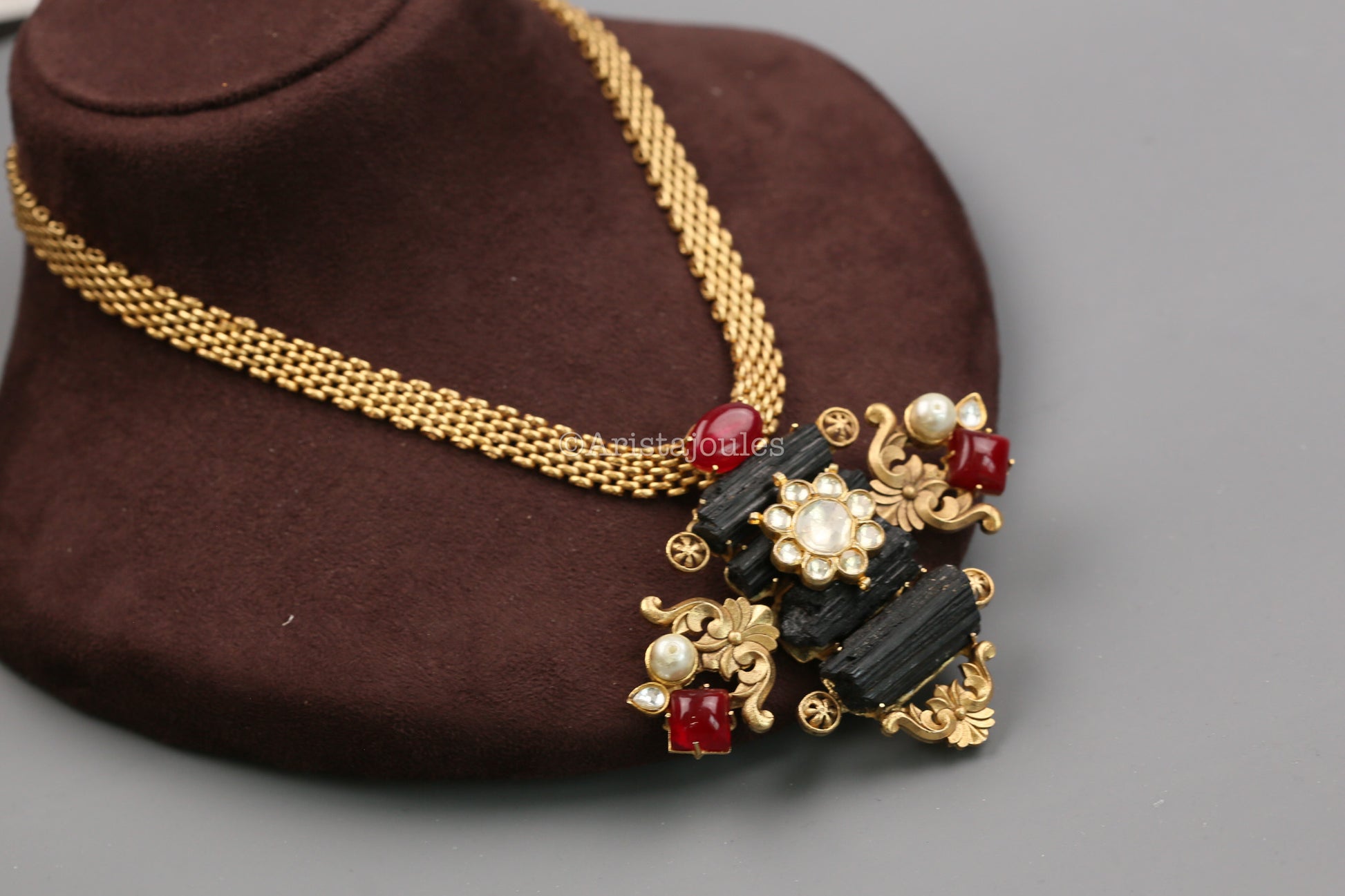 Meet the Evika Necklace, a playful blend of raw garnet stones and sparkling Kundan craftsmanship.