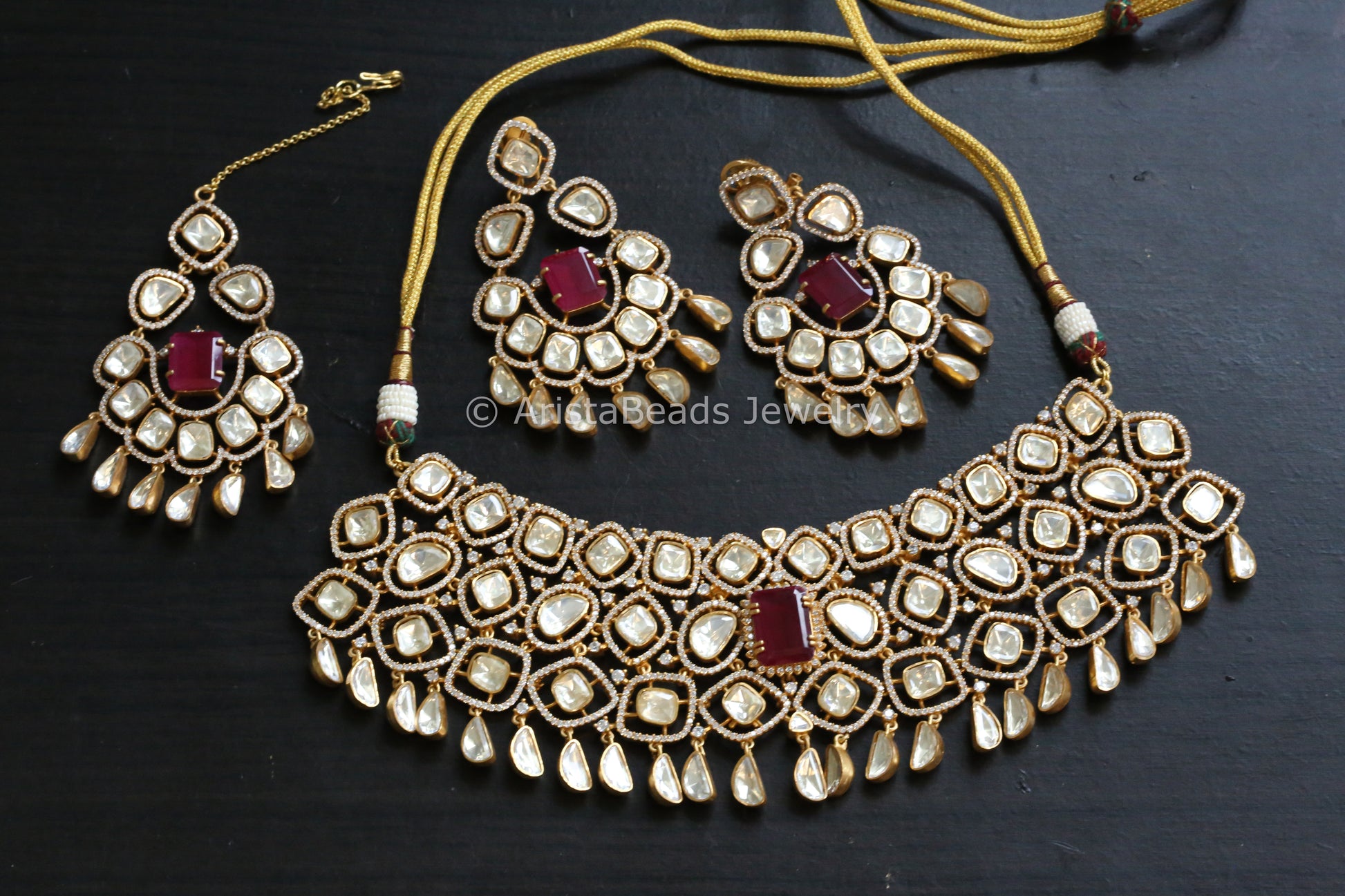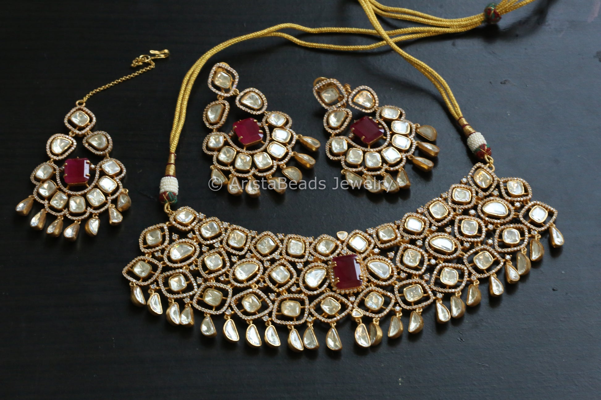 Flexible Real Moissanite & Red Doublet Necklace Set