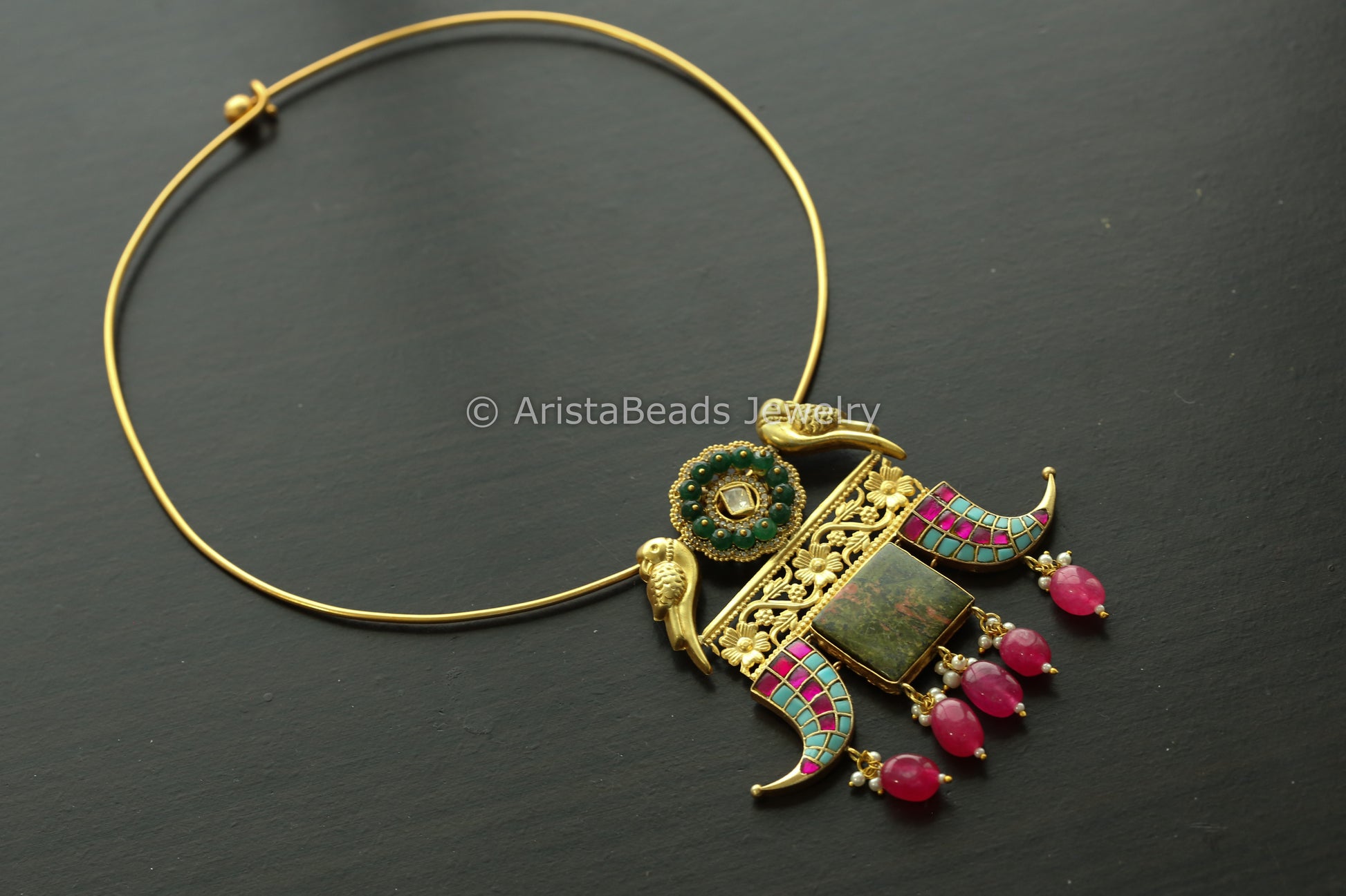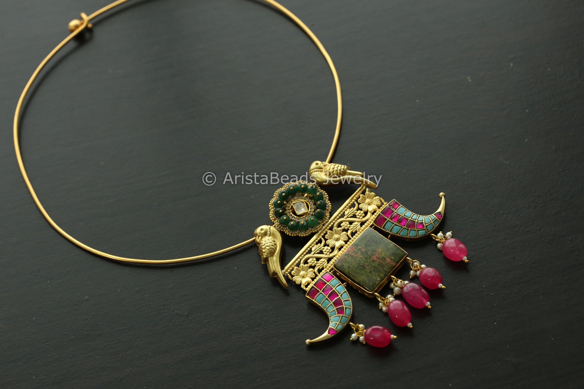 Fusion Jadau Kundan Hasli Necklace -Jasper