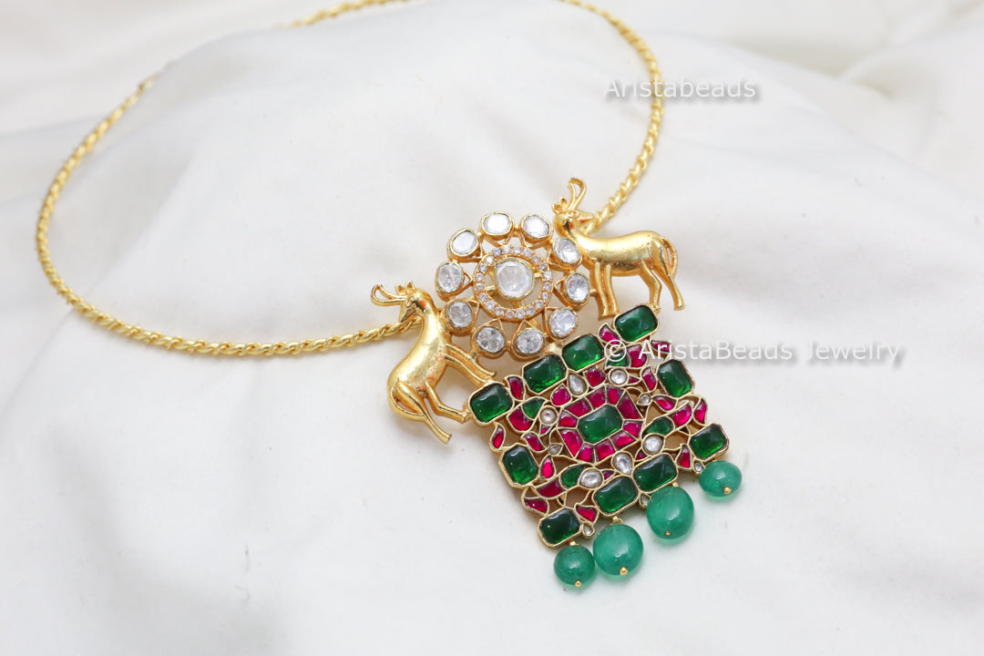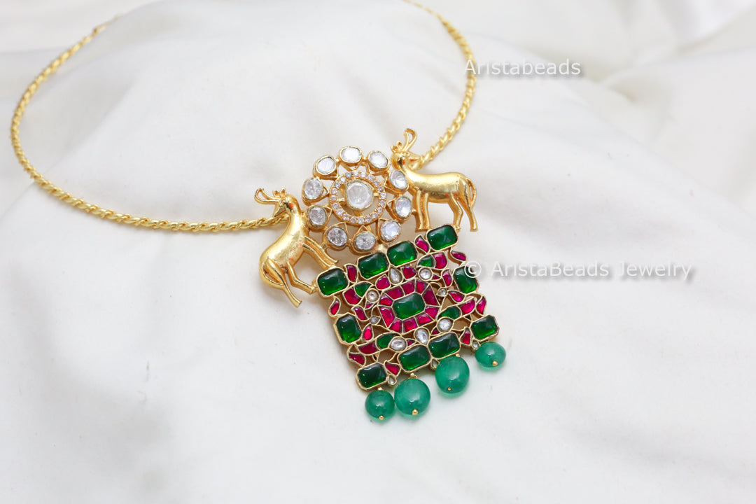 Fusion Jadau & Moissanite Pendant Hasli Necklace