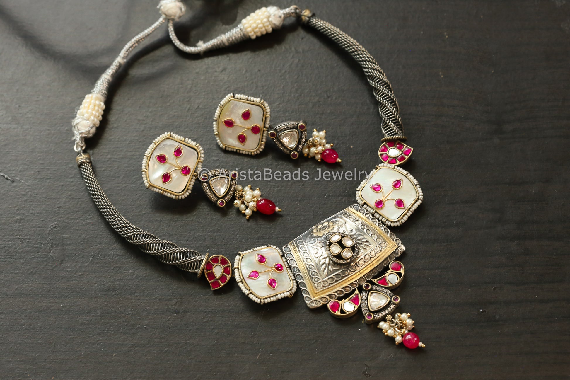 Fusion Jadau , MOP & Antique Silver Finish Set (ABJ-N101-77)
