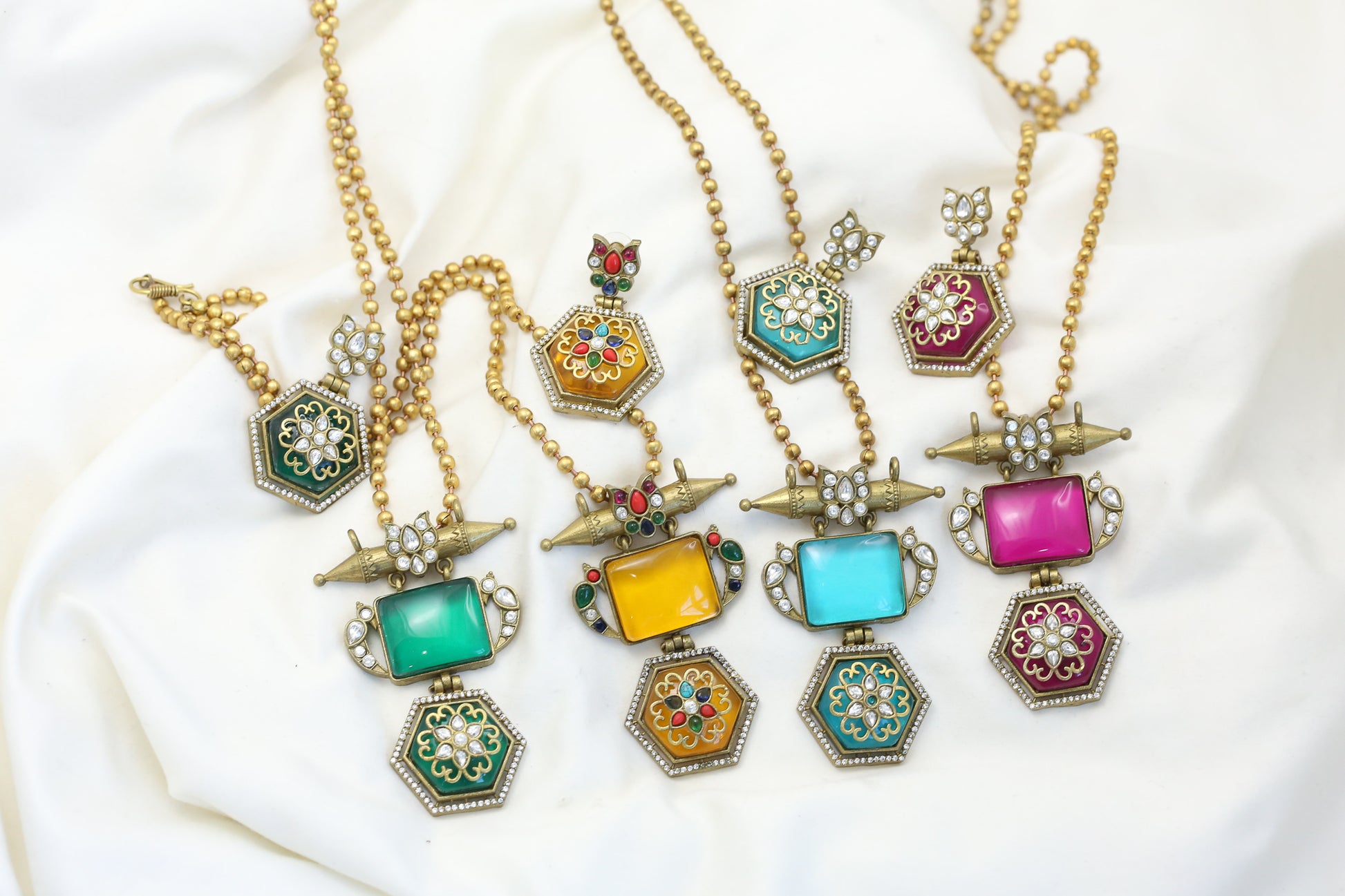Fusion Kundan Inlay Necklace Set (T102-40)