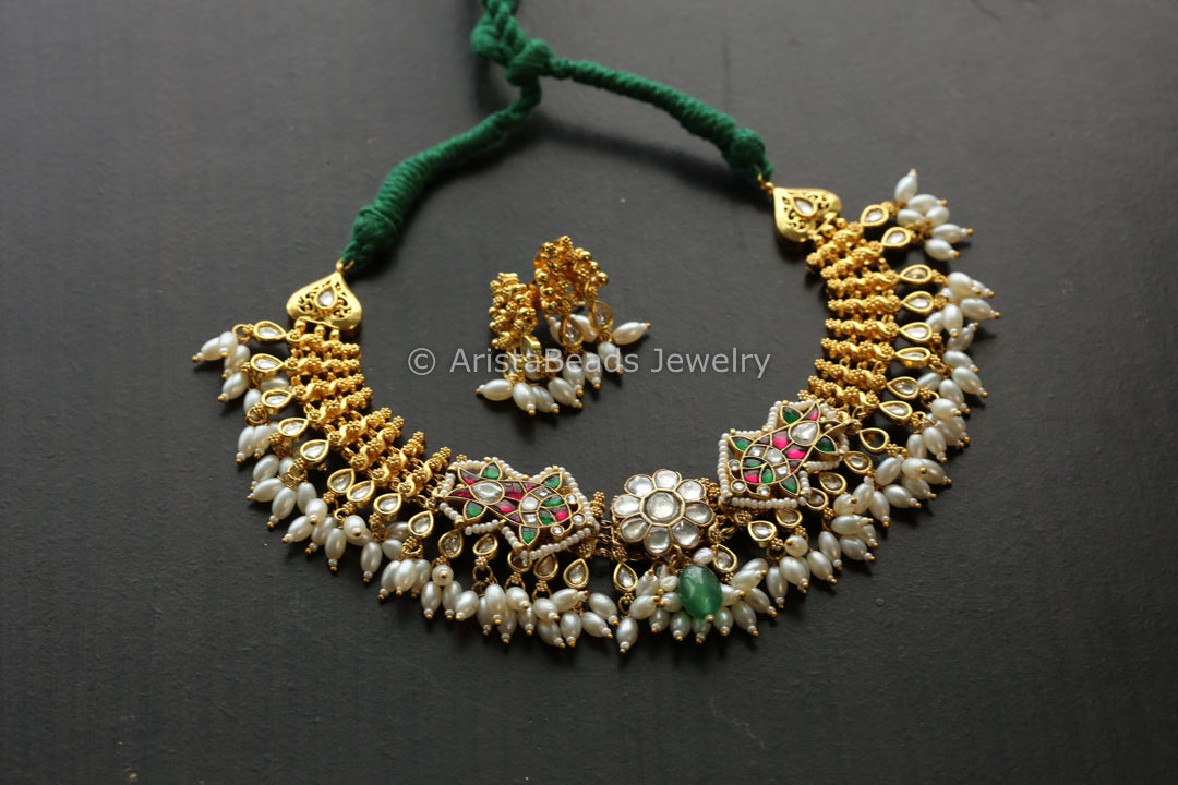 Gold Fusion Jadau Kundan Necklace Set - Style 3