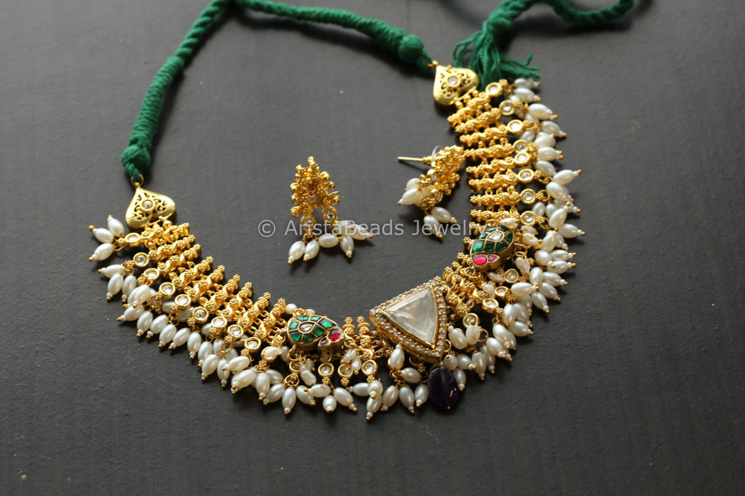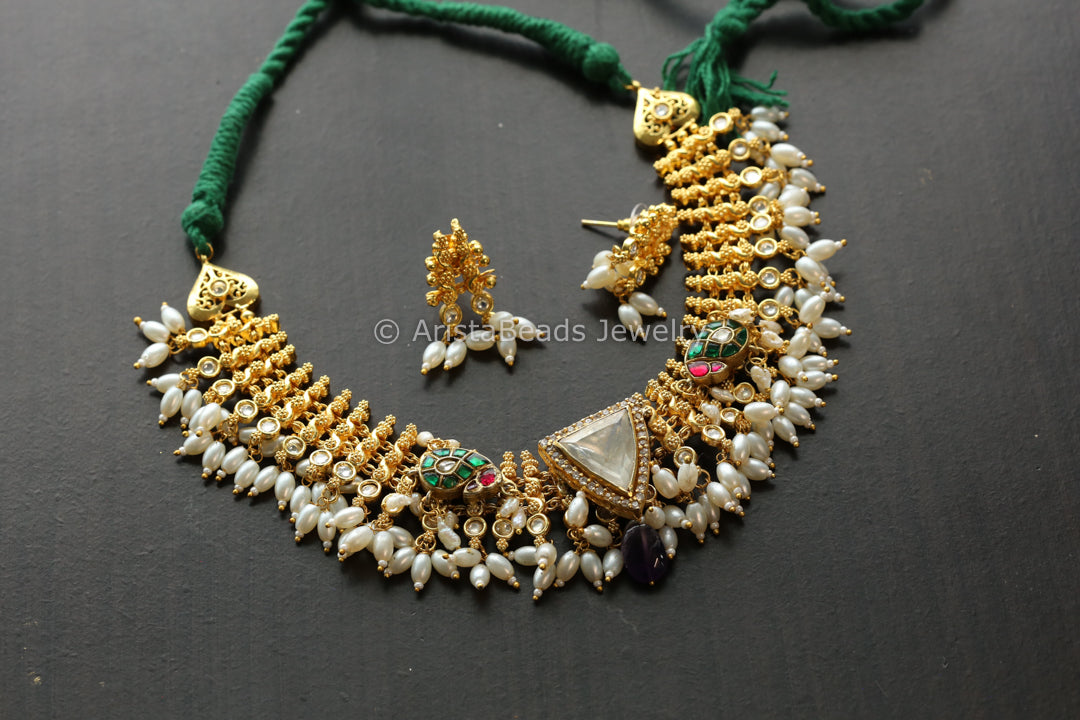 Gold Fusion Jadau Kundan Necklace Set - Style 4