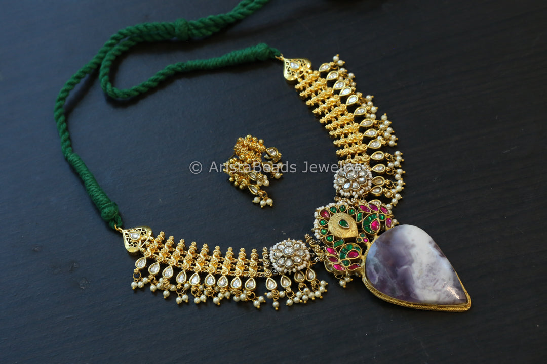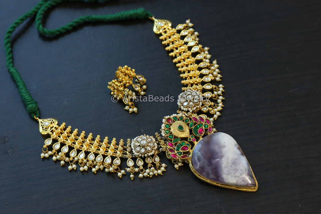 Gold Fusion Jadau Kundan Necklace Set - Style 4