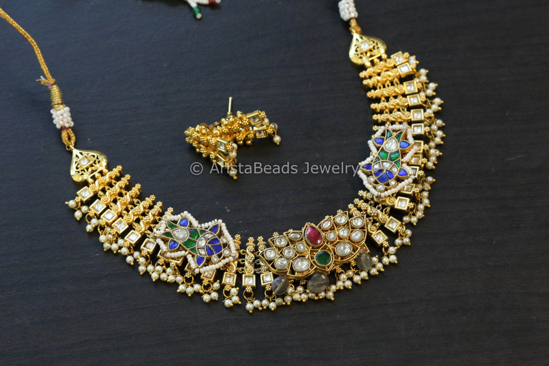 Gold Fusion Jadau Kundan Necklace Set - Style1