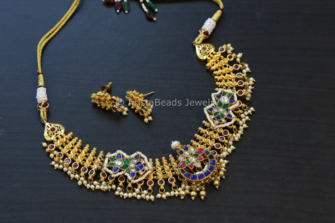 Gold Fusion Jadau Kundan Necklace Set - Style2