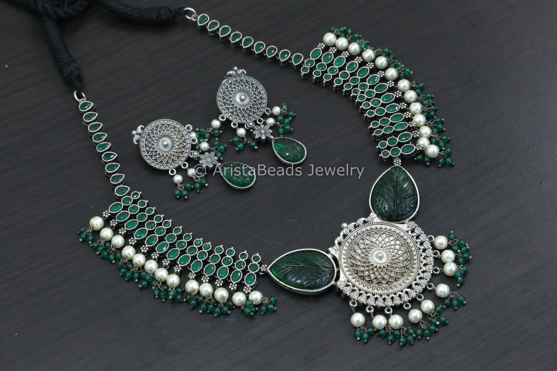 Green Carved Stone & AD Necklace Set