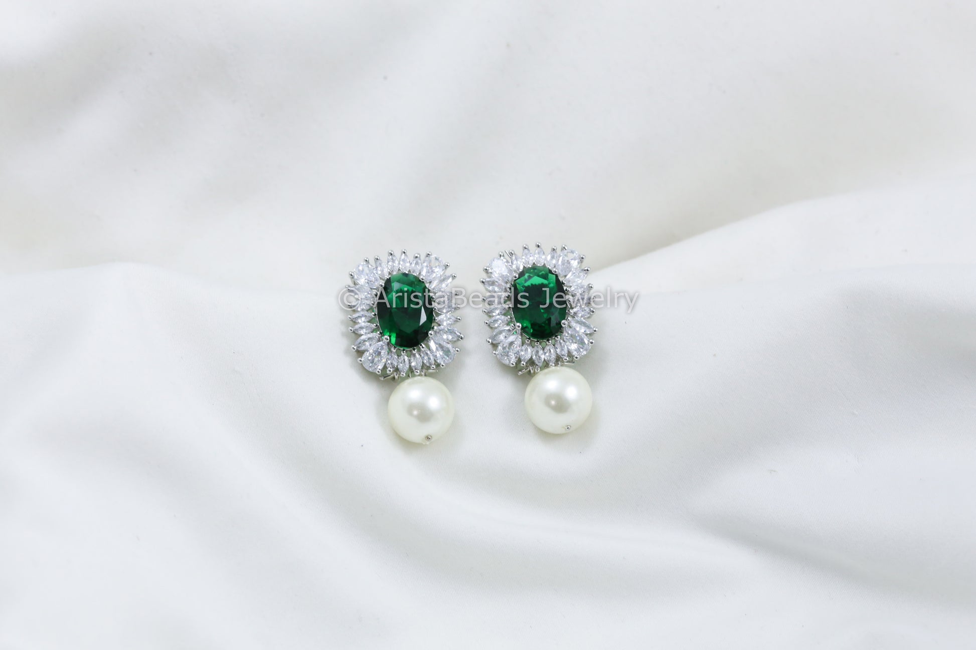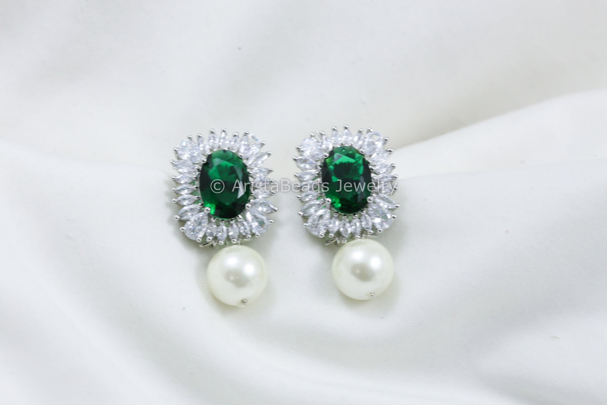 Green CZ Earring With Pearl Drops