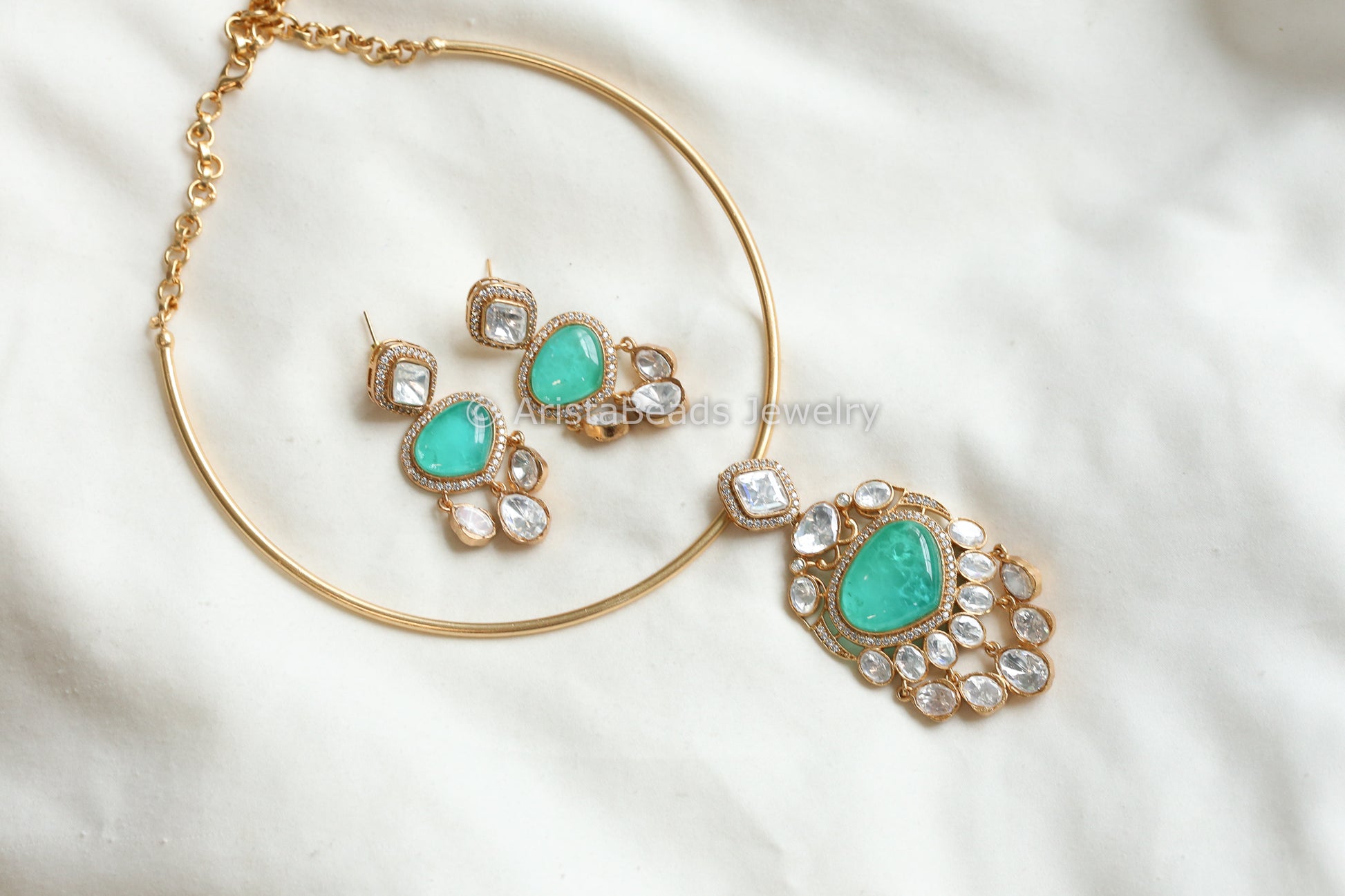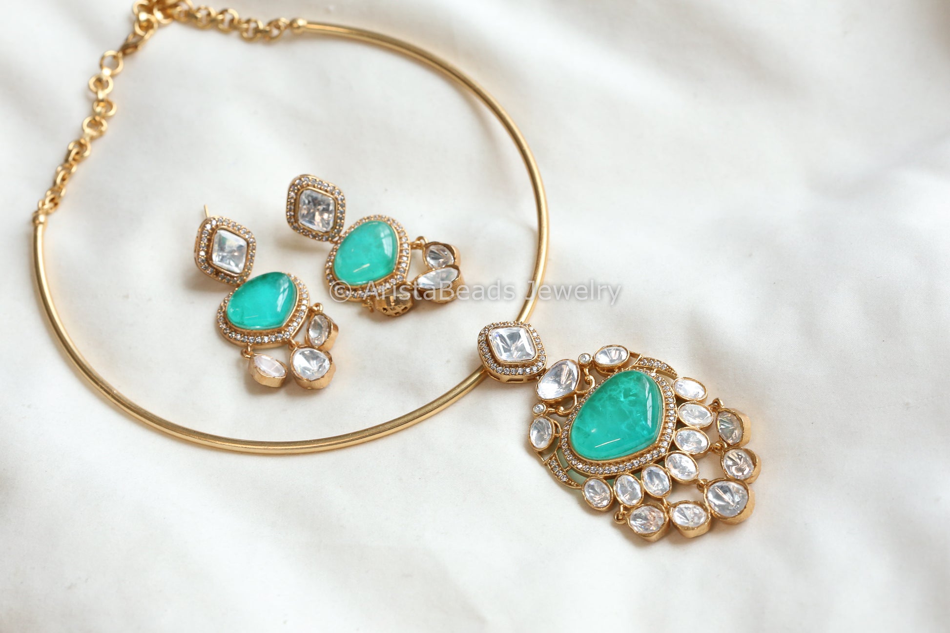 Green Doublet & Kundan Polki Necklace Set (ABJ-N101-56)