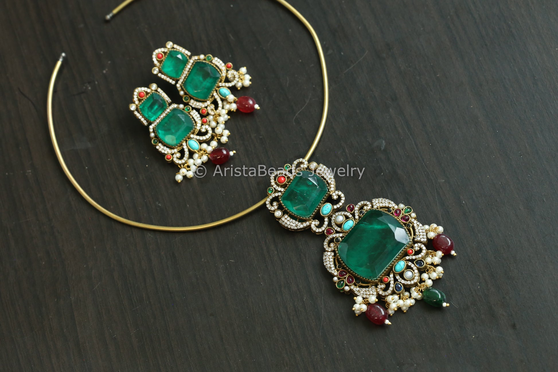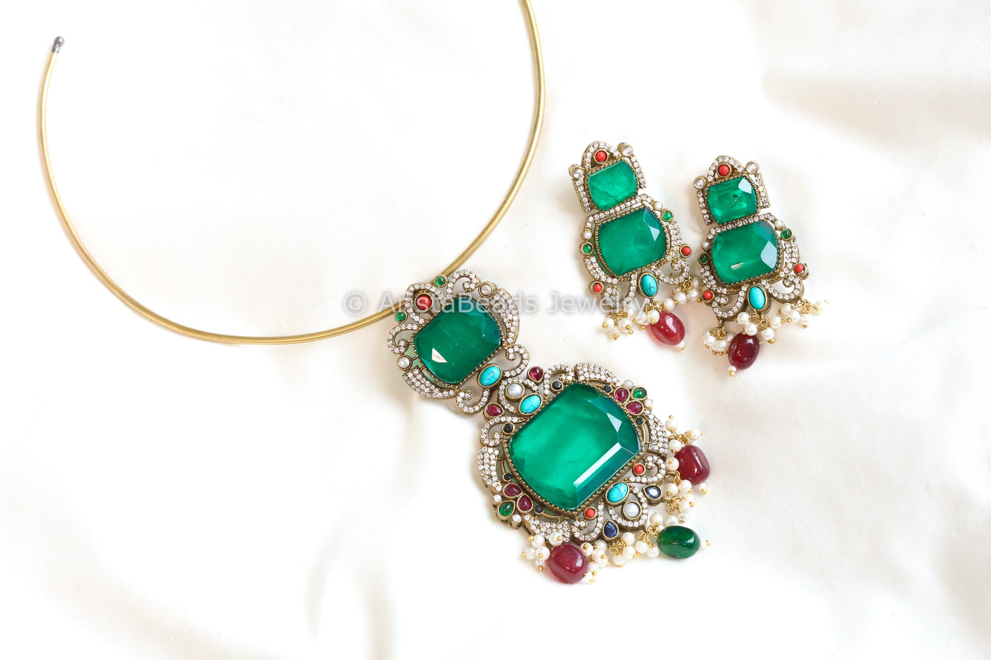 Green Doublet & MUlticolor Stone Necklace Set (ABJ-N101- 61)