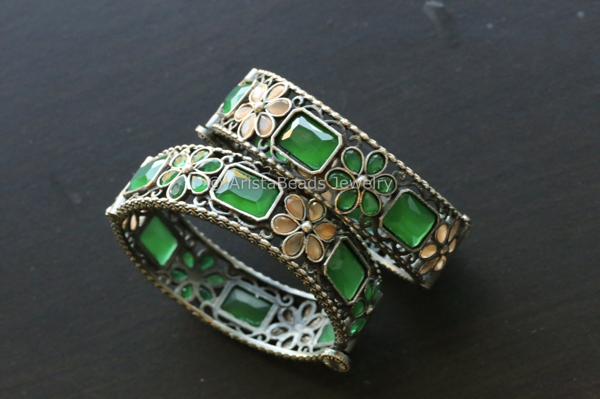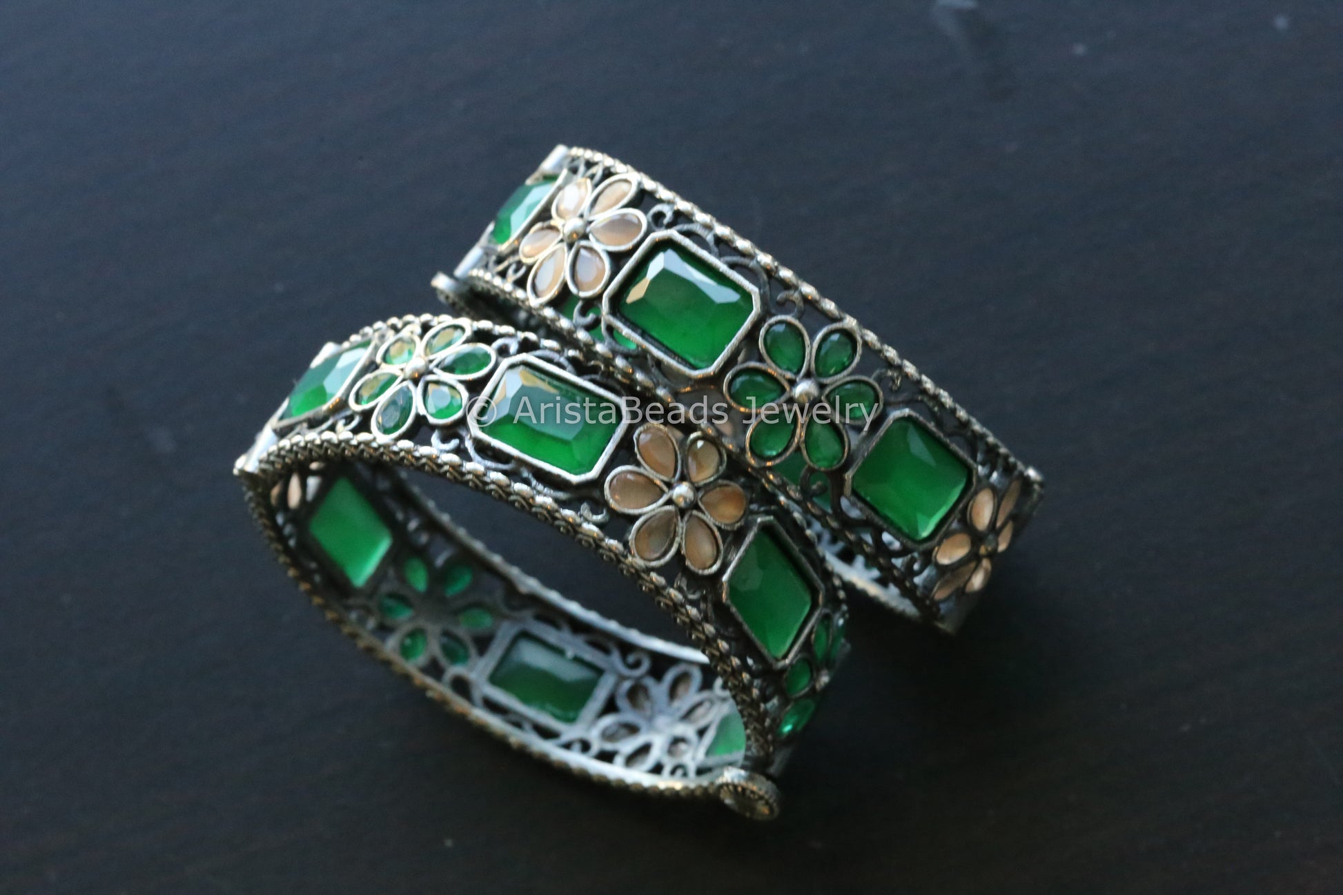 Green Orange Oxidized Bangle Set (2.6 openable)