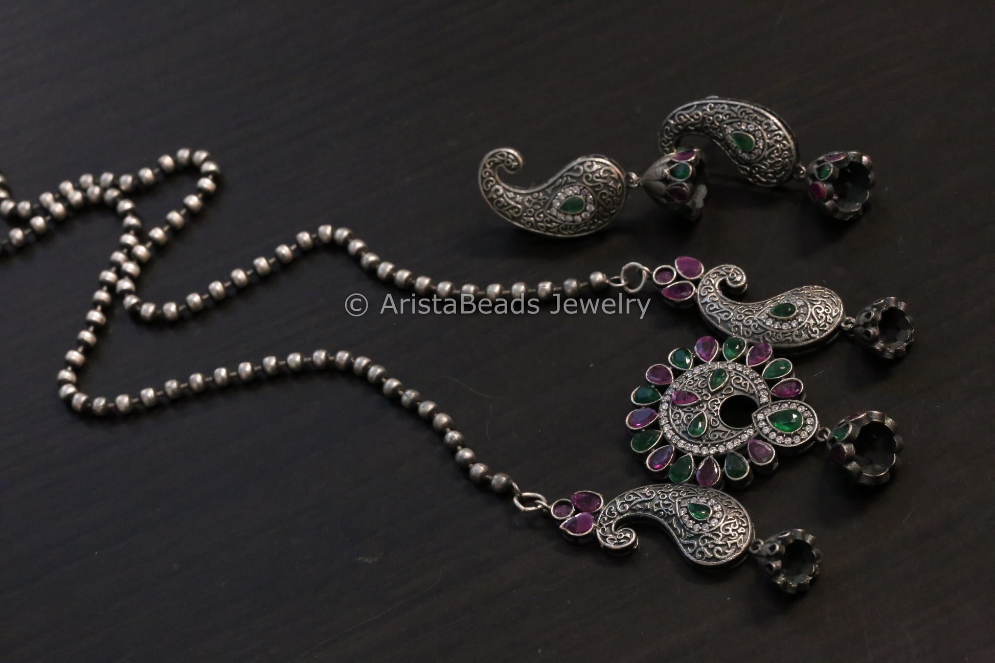 Green Ruby CZ Pendant Chain Set