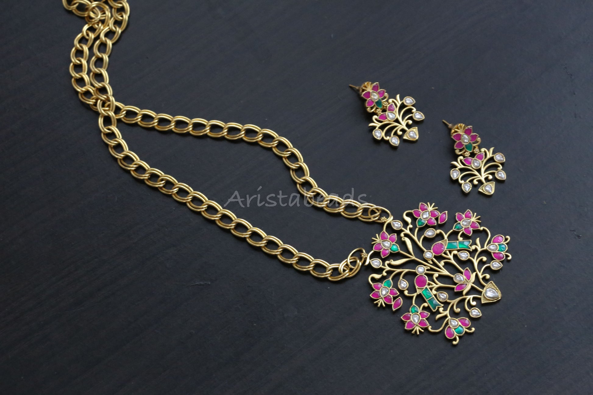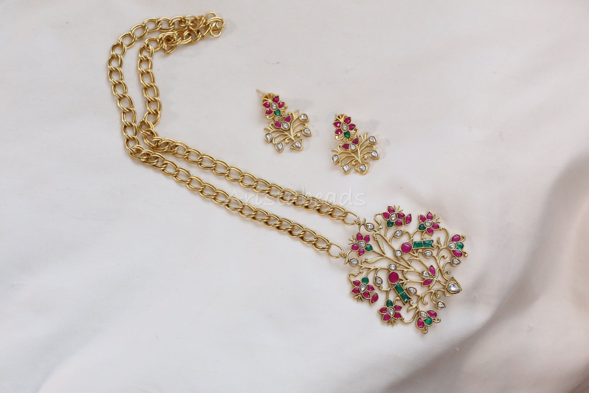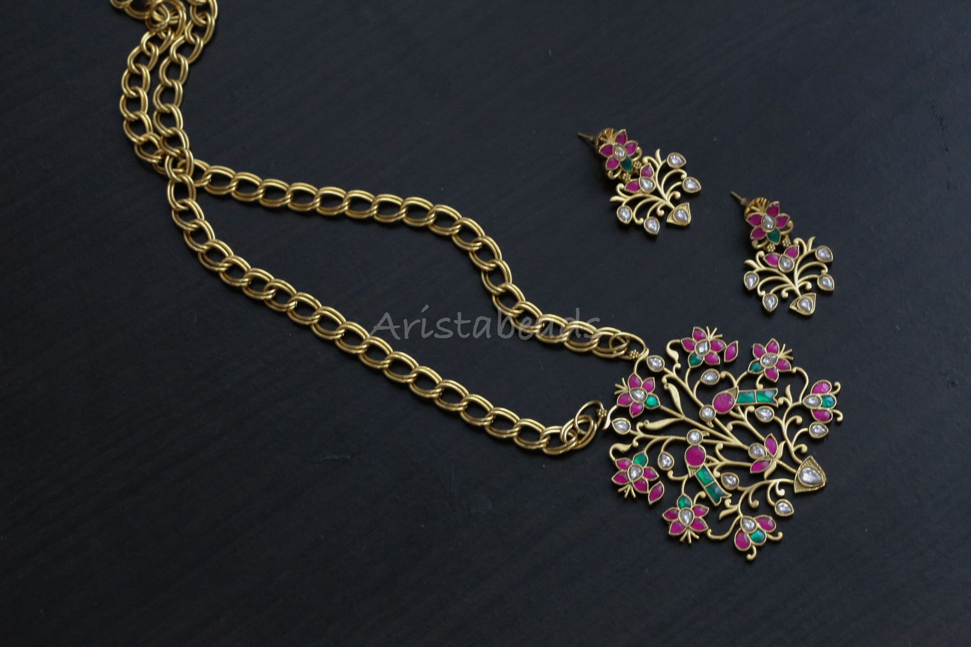 Handmade Antique Chain Jadau Necklace Set (104-03)