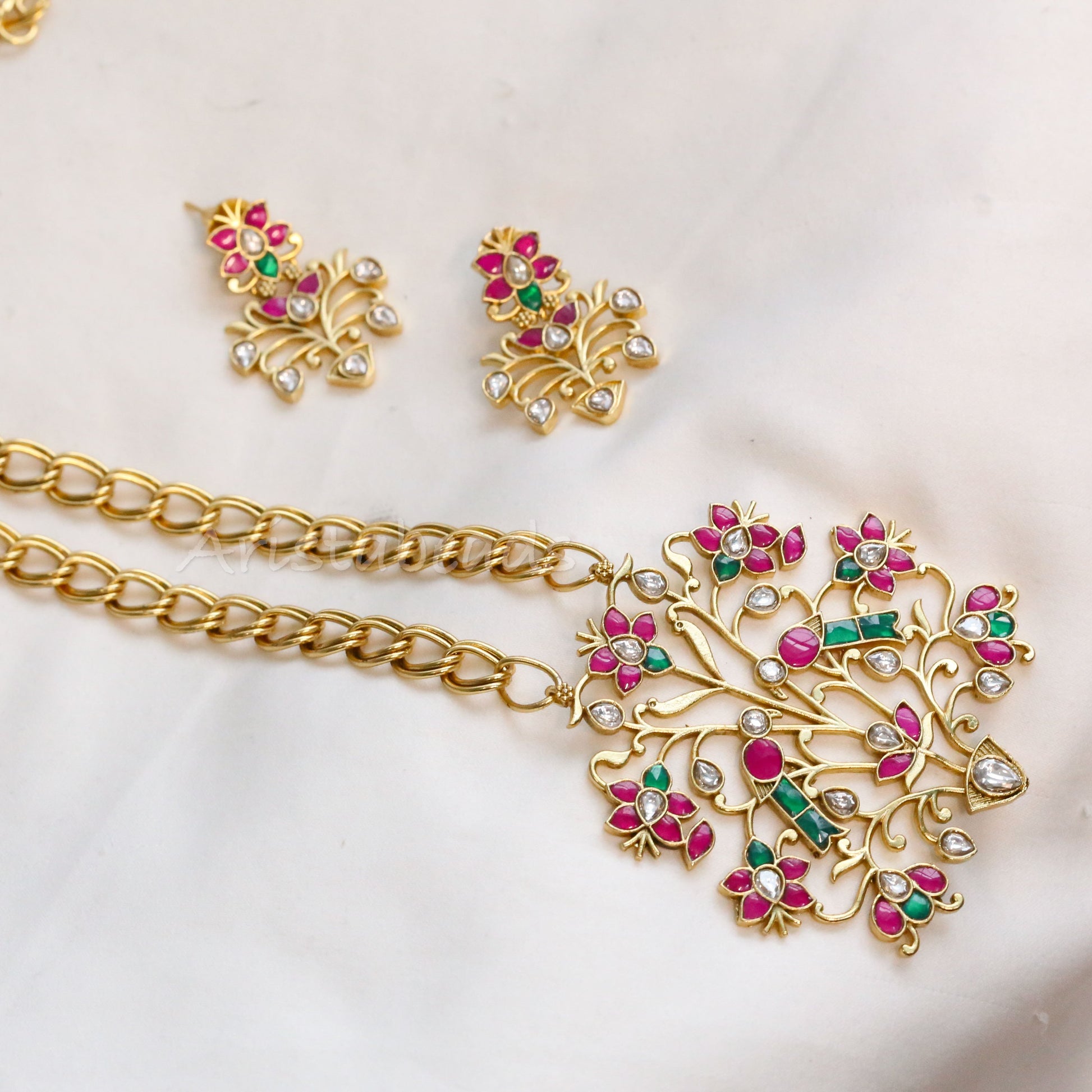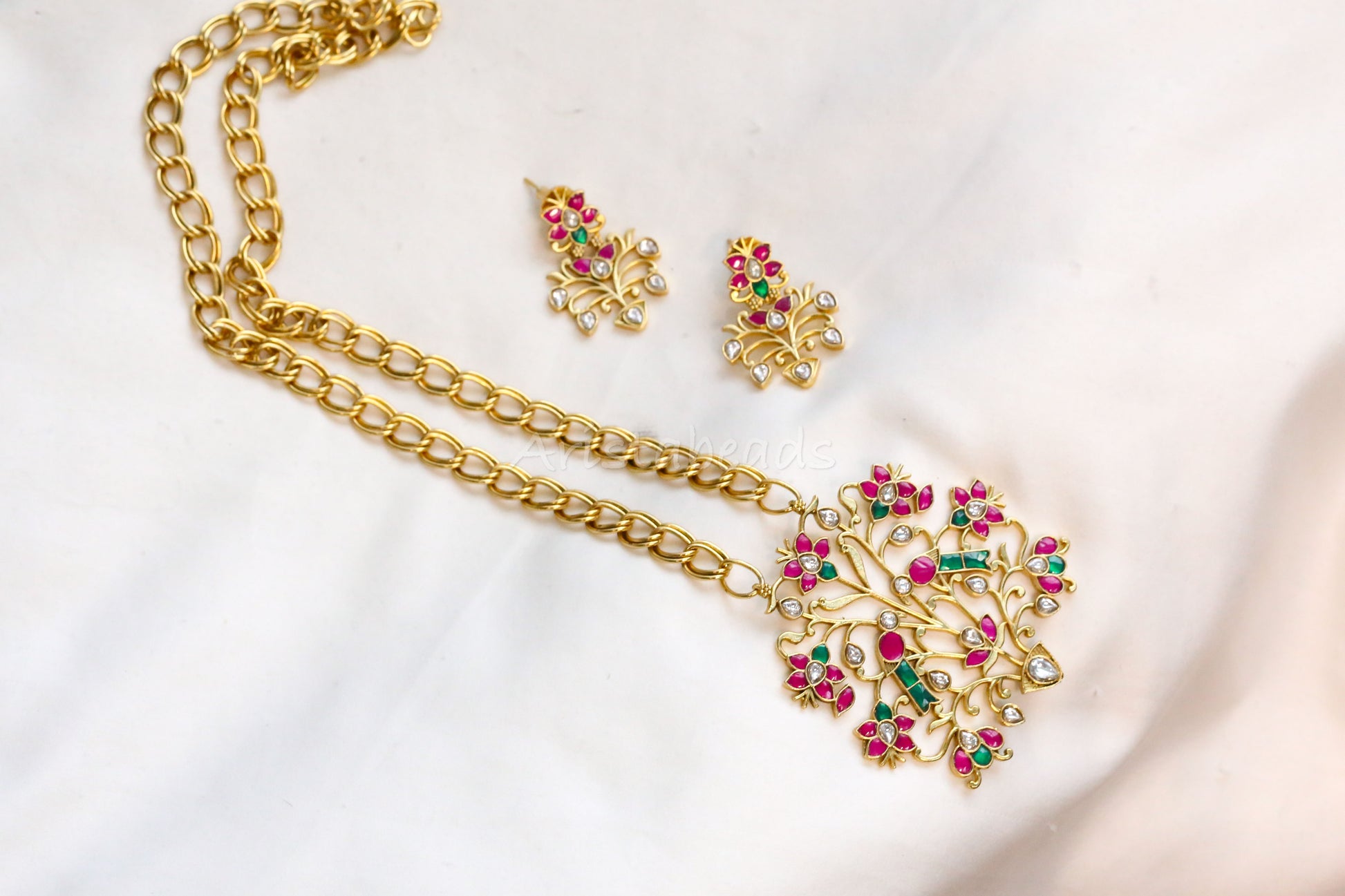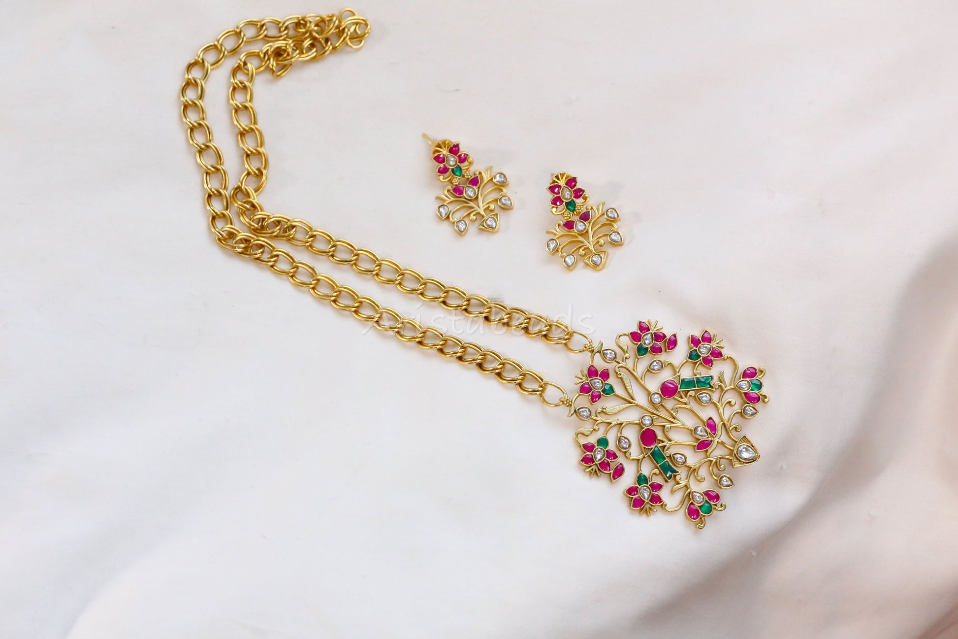 Handmade Antique Chain Jadau Necklace Set (104-03)