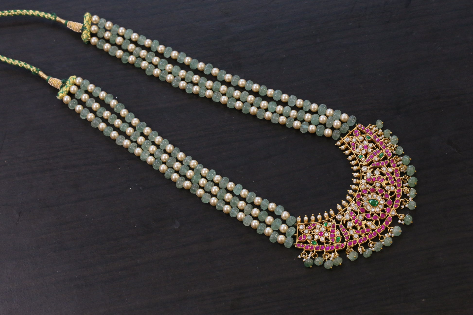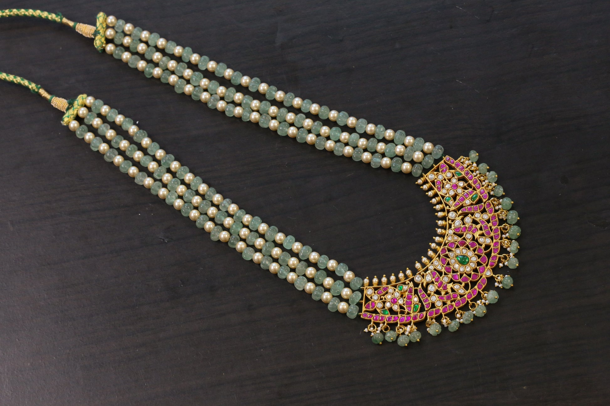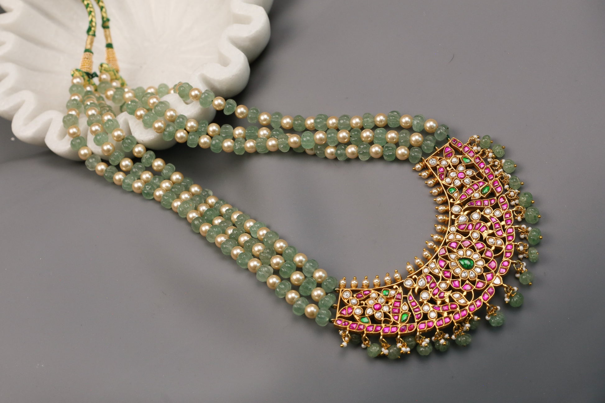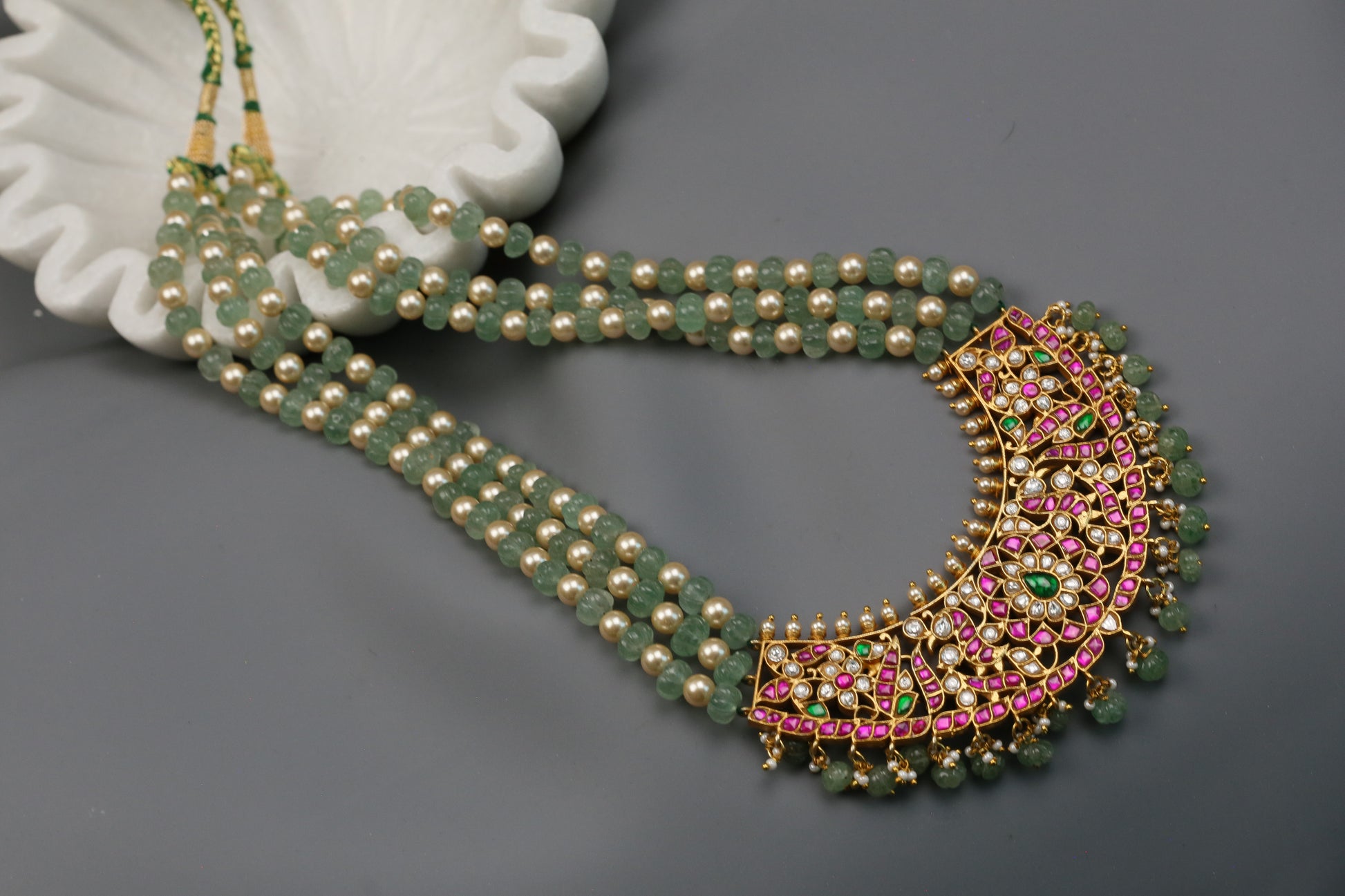 Handmade Jadau Haram Necklace- Strawberry Melon Beads