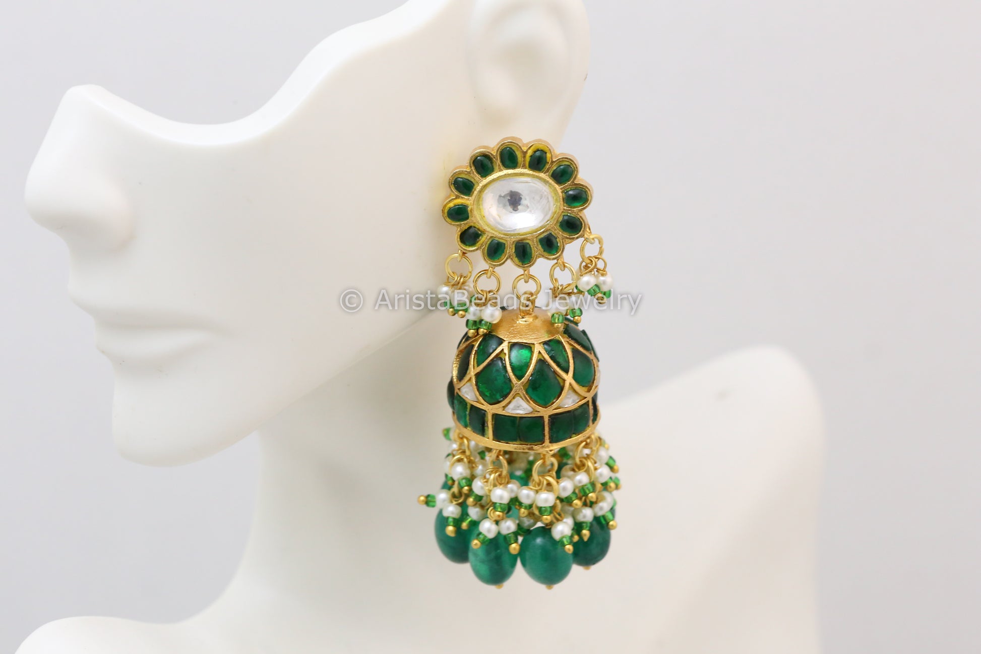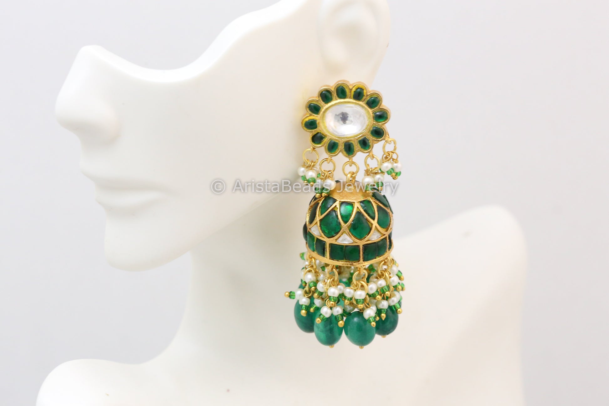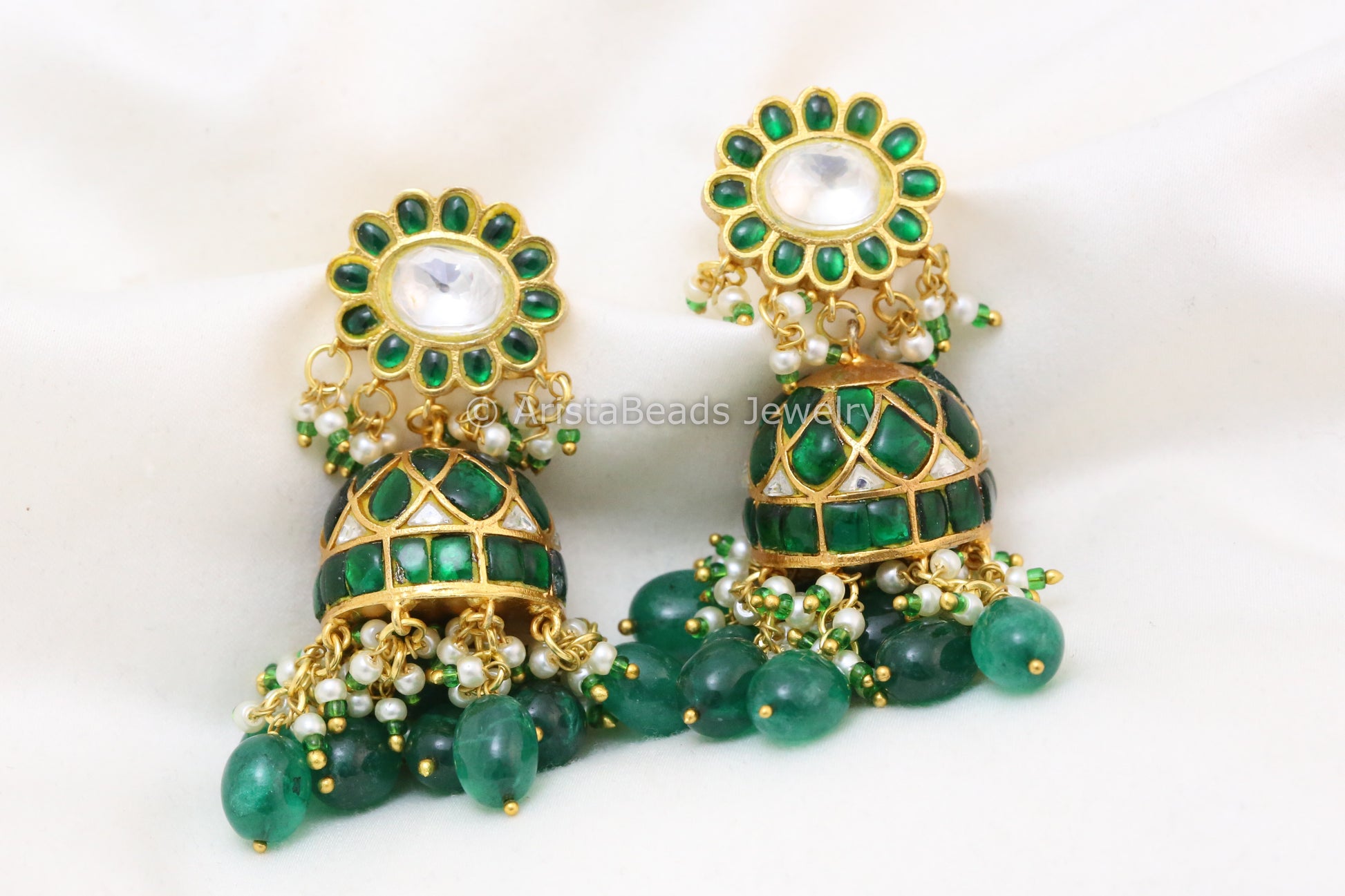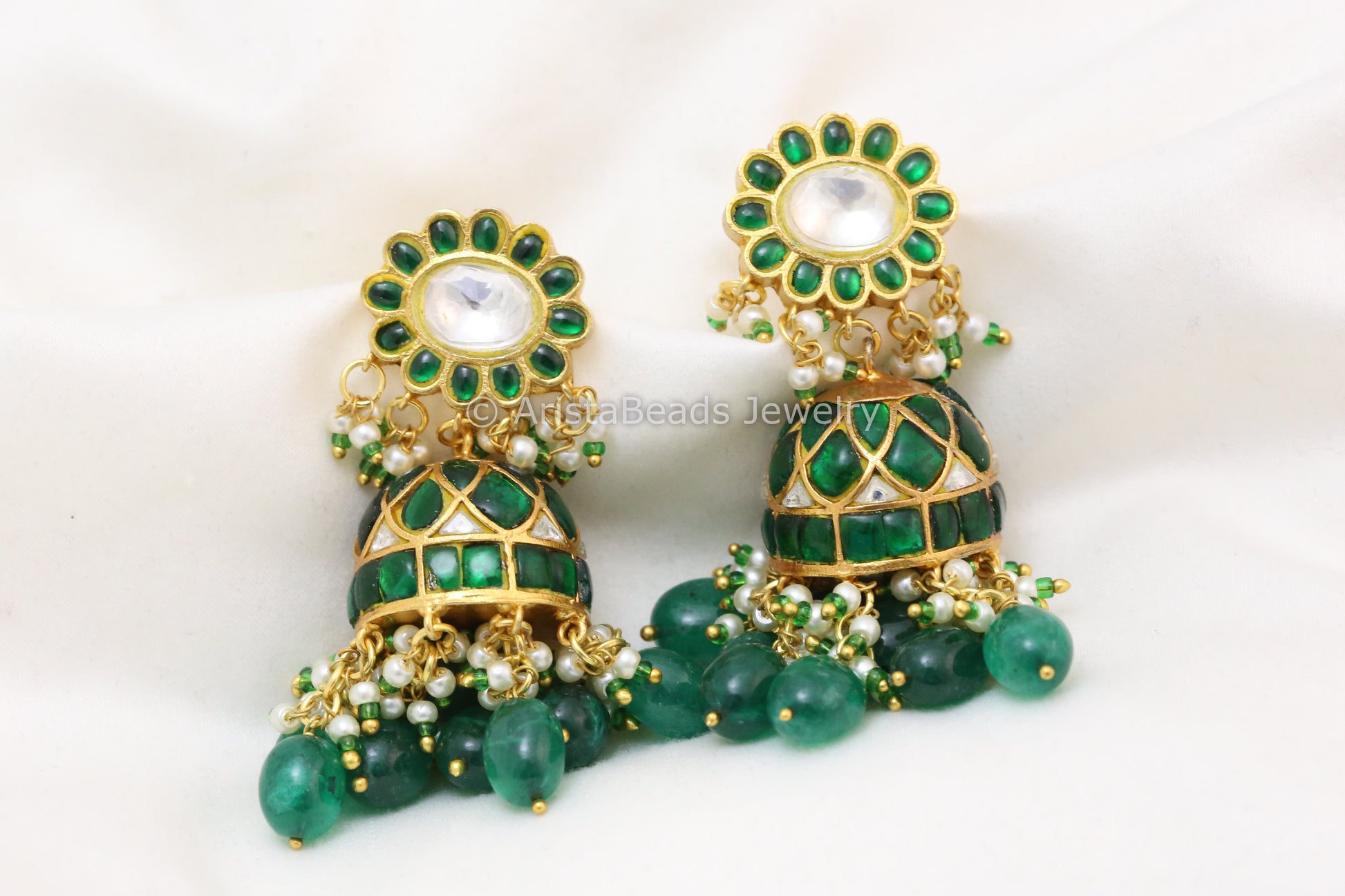 Handmade Emerald Jadau Kundan Jhumka