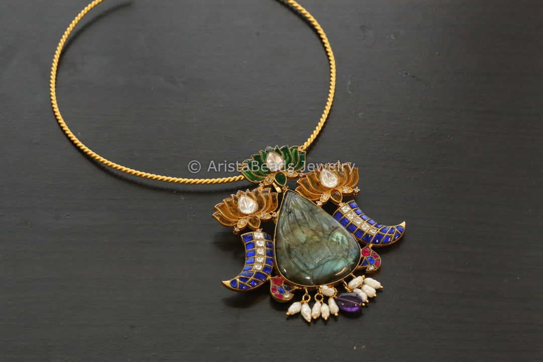 Handmade Jadau Kundan Pendant Hasli Ncklace - Style 3