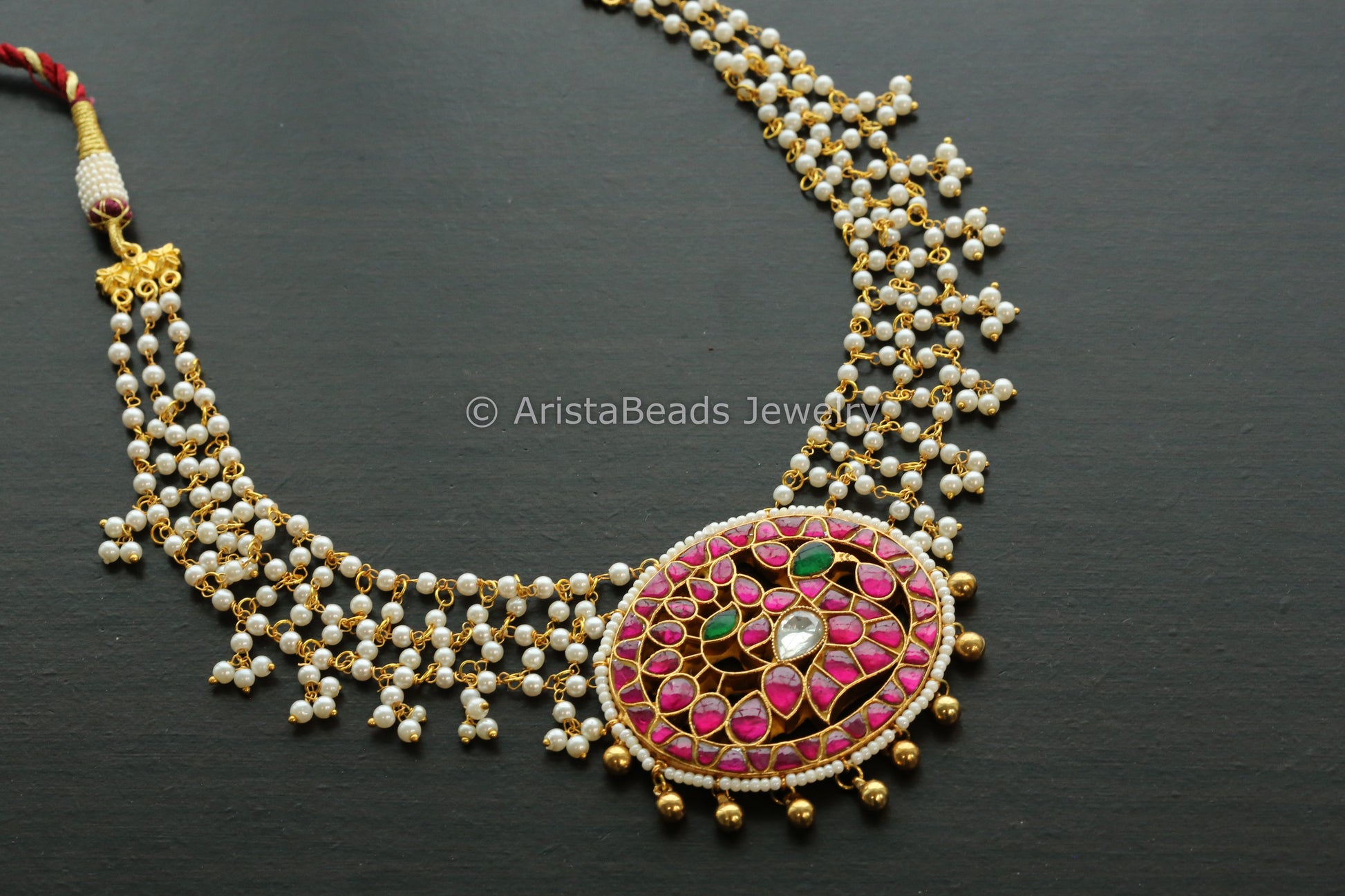 Handmade Jadau Peacock Kundan Necklace - Ruby