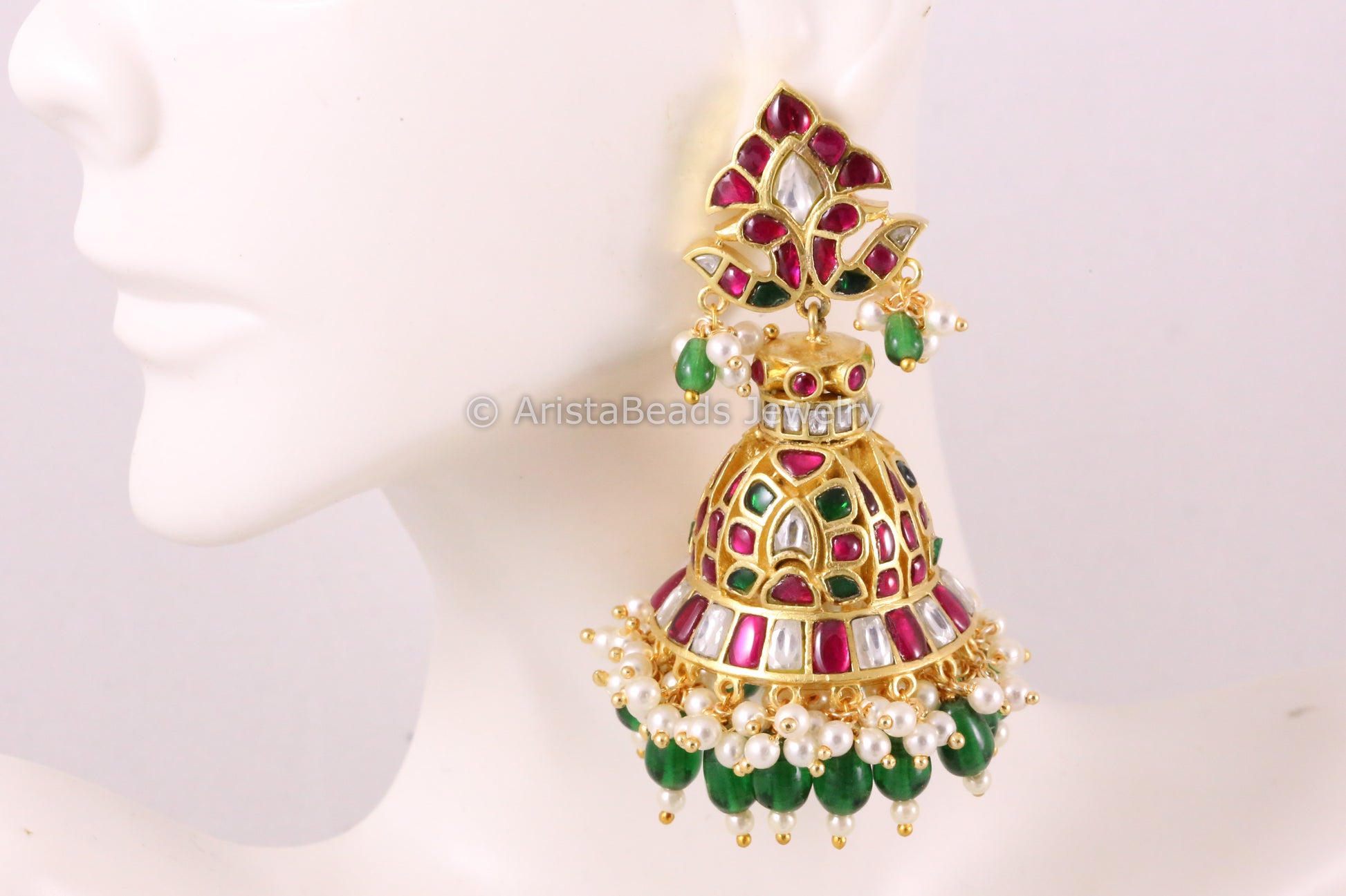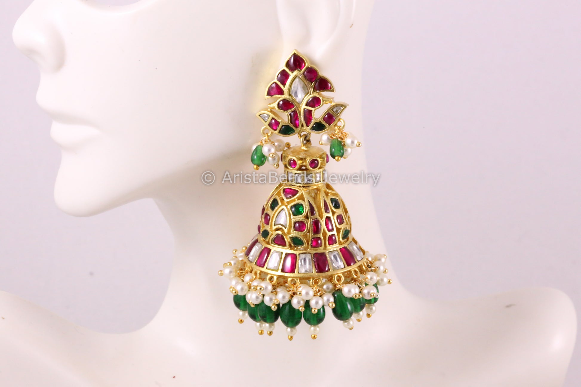 Handmade Jadau Ruby Emerald Kundan Jhumka