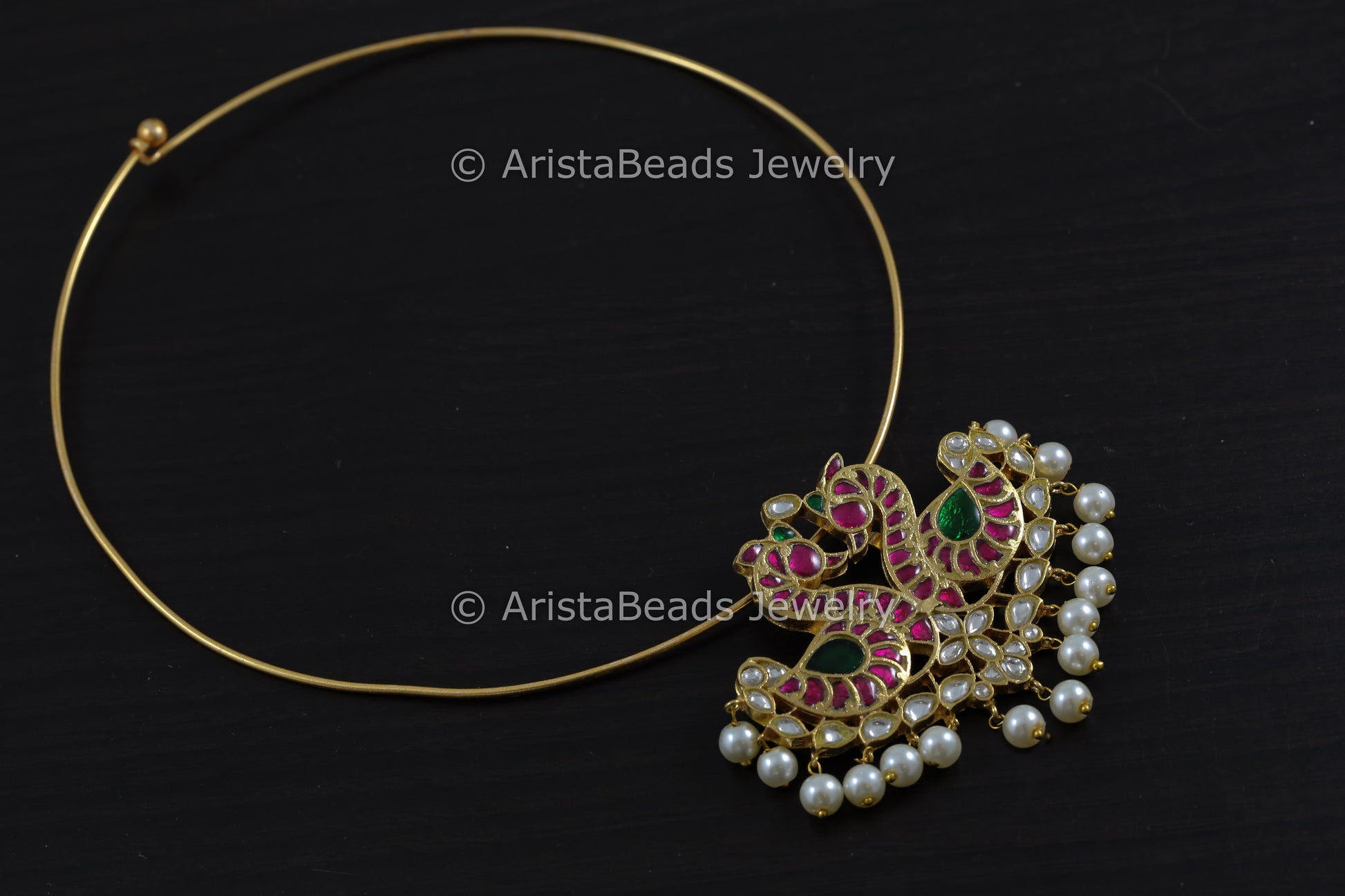 Handmade Jadau Swan Necklace Set in Wire Hasli