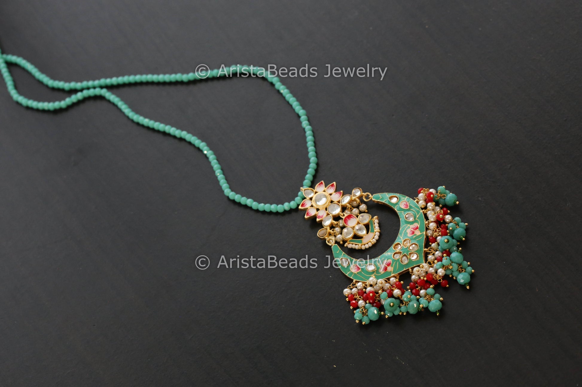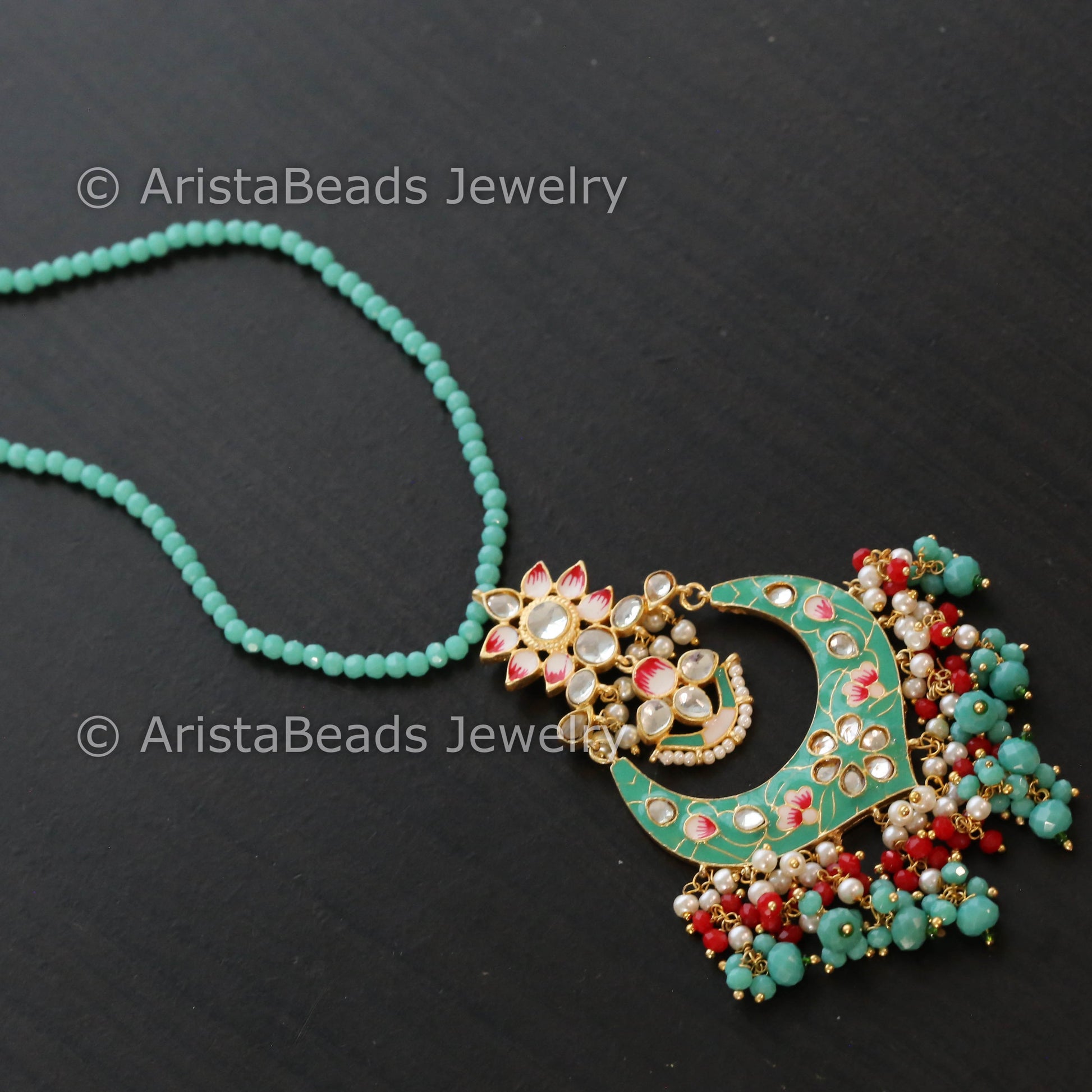 Handmade Mala Necklace With Enamel Pendant - Mint