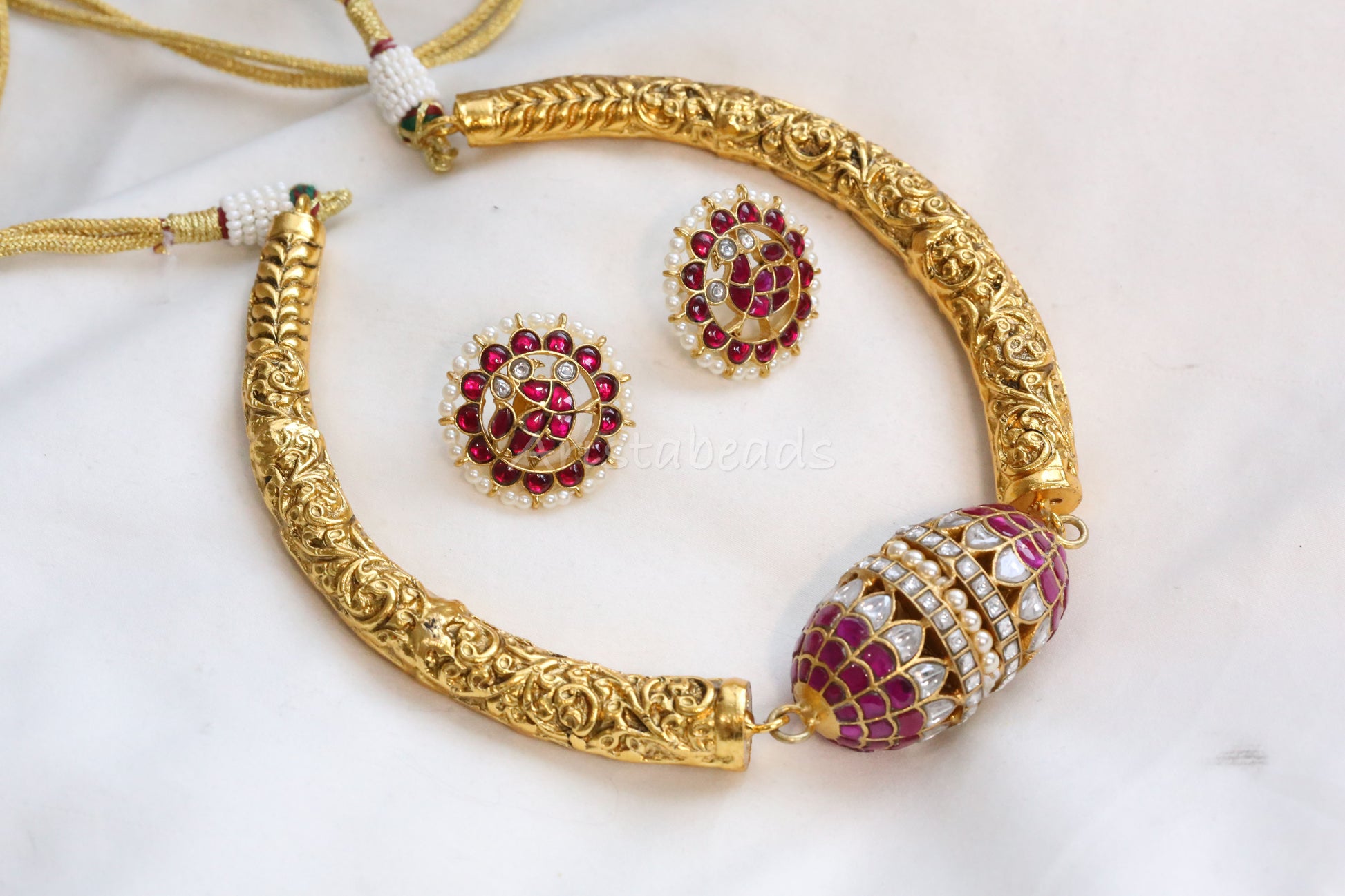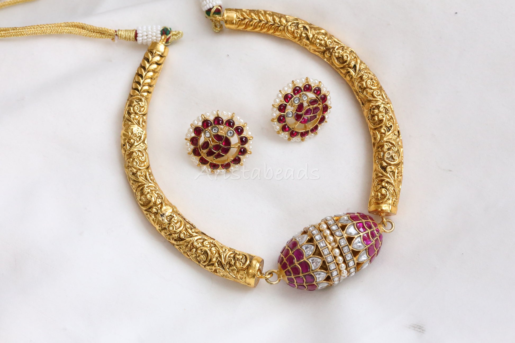 Handmade Nakshi Carved Hasli Necklace Set (104-02)