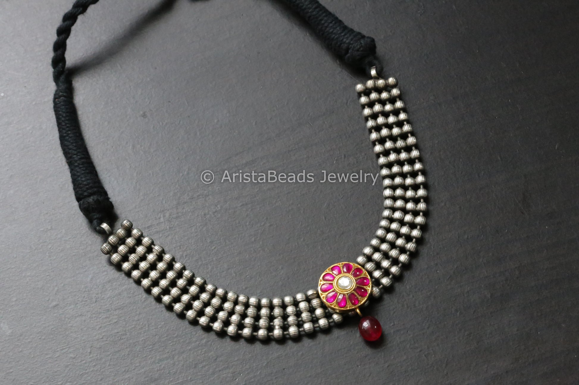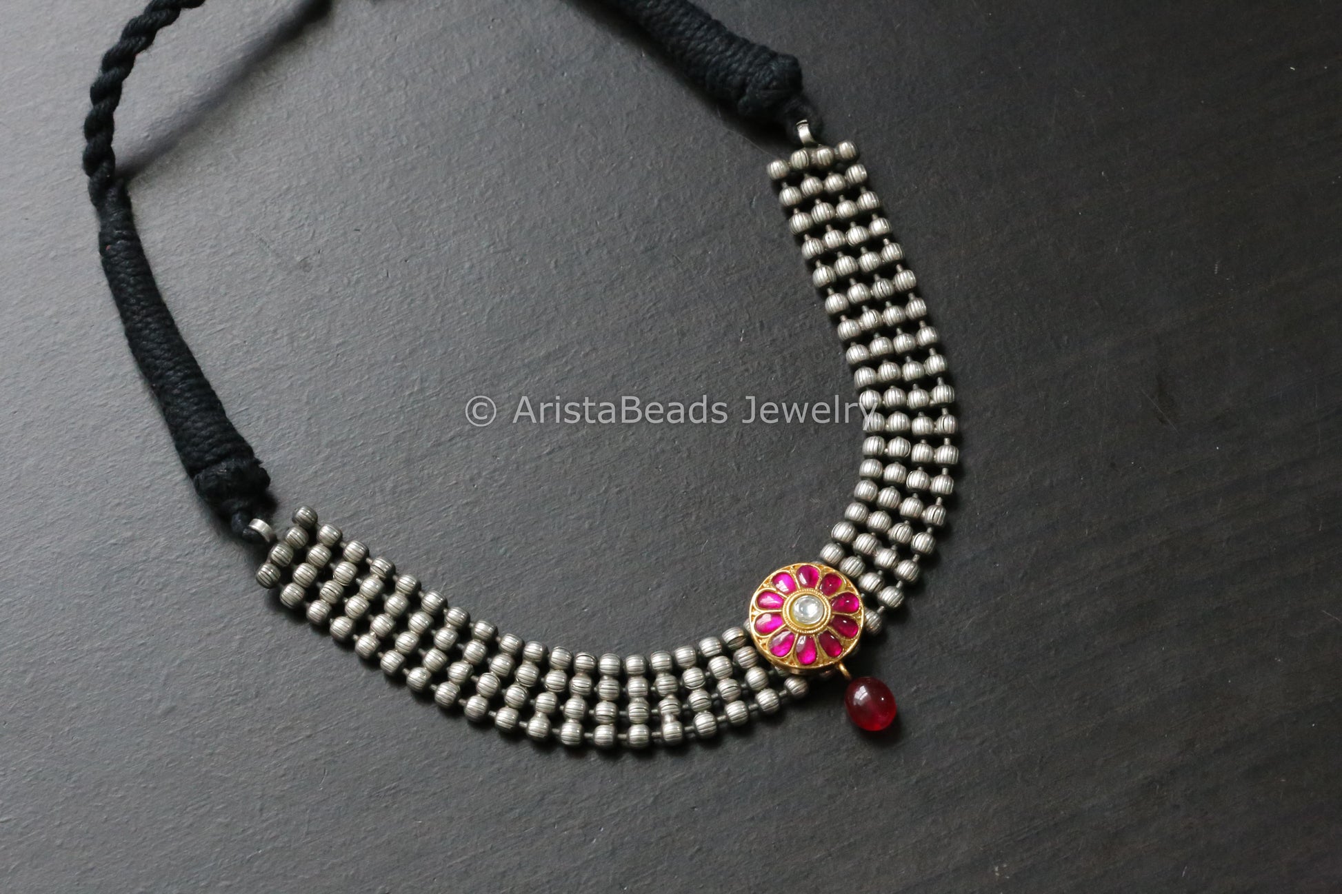 Handmade Oxidized Necklace - Kundan Jadau Motif