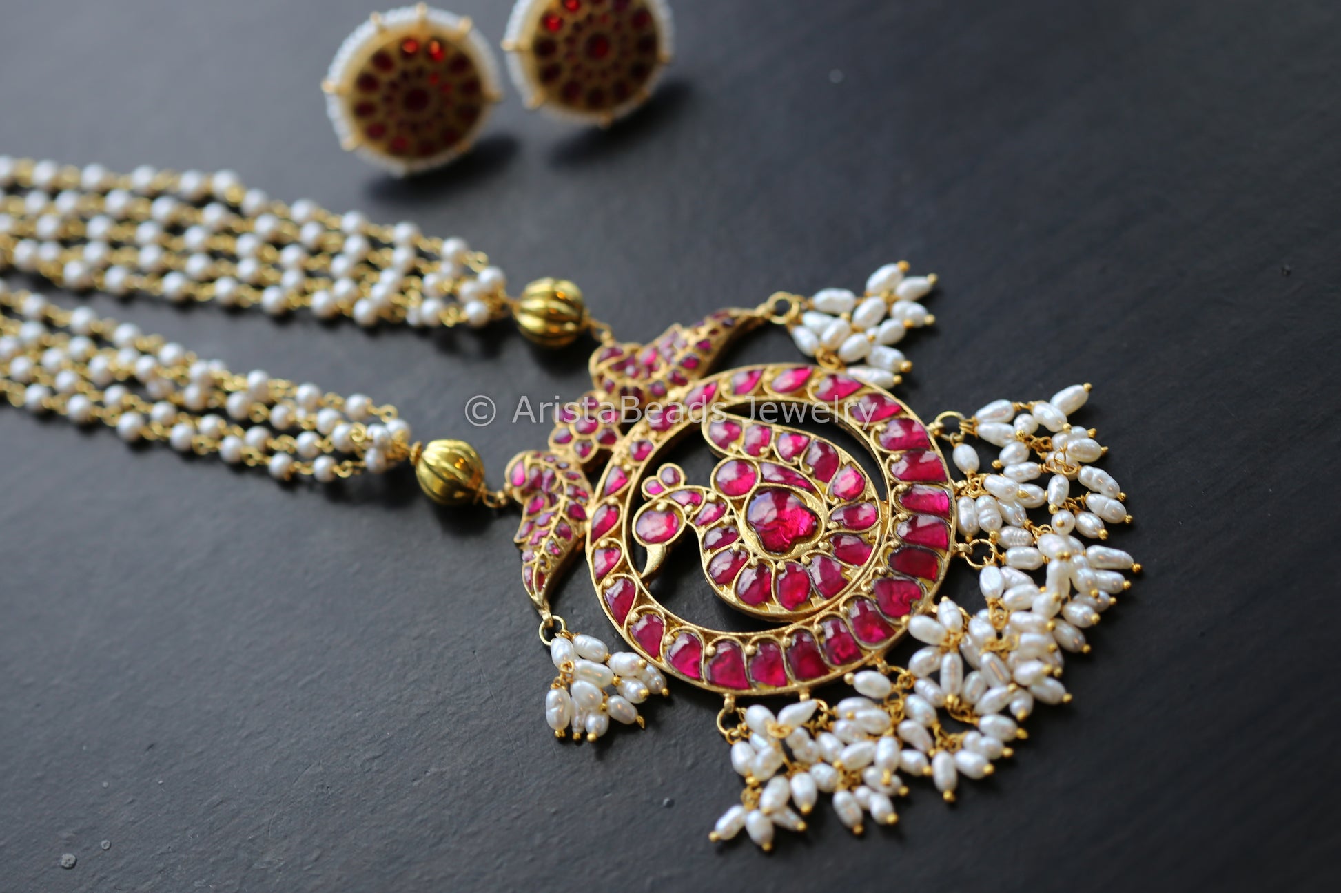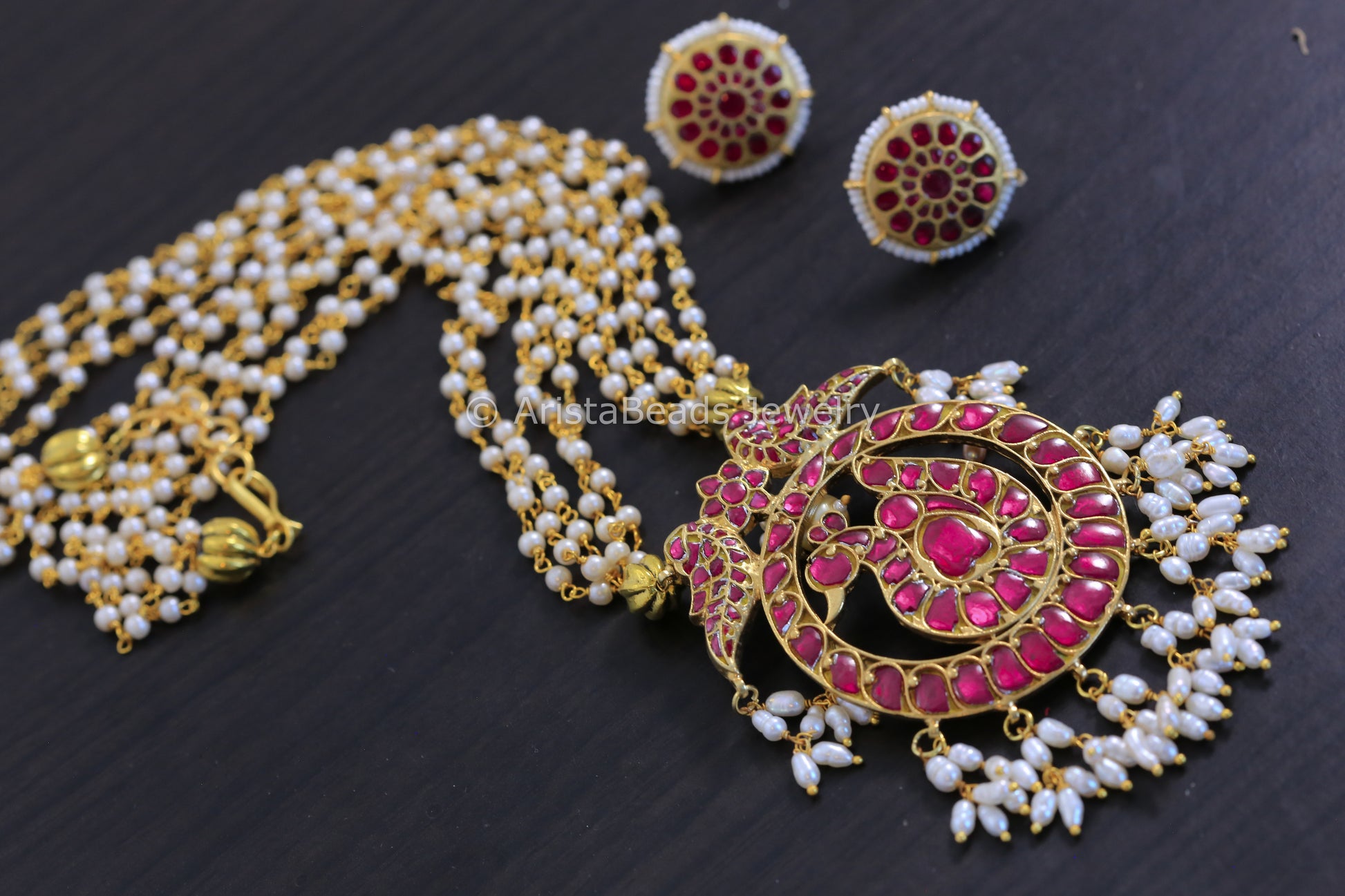 Handmade Ruby Peacock Kundan Necklace Set